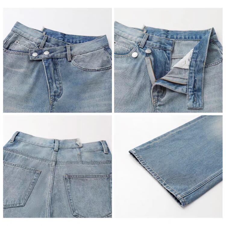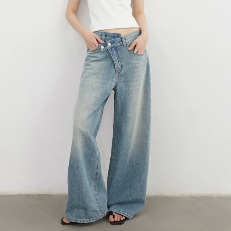 リメイクデザインウォッシュドデニムワイドパンツ 1268