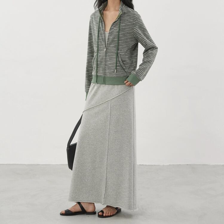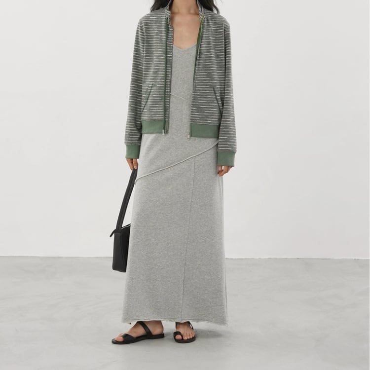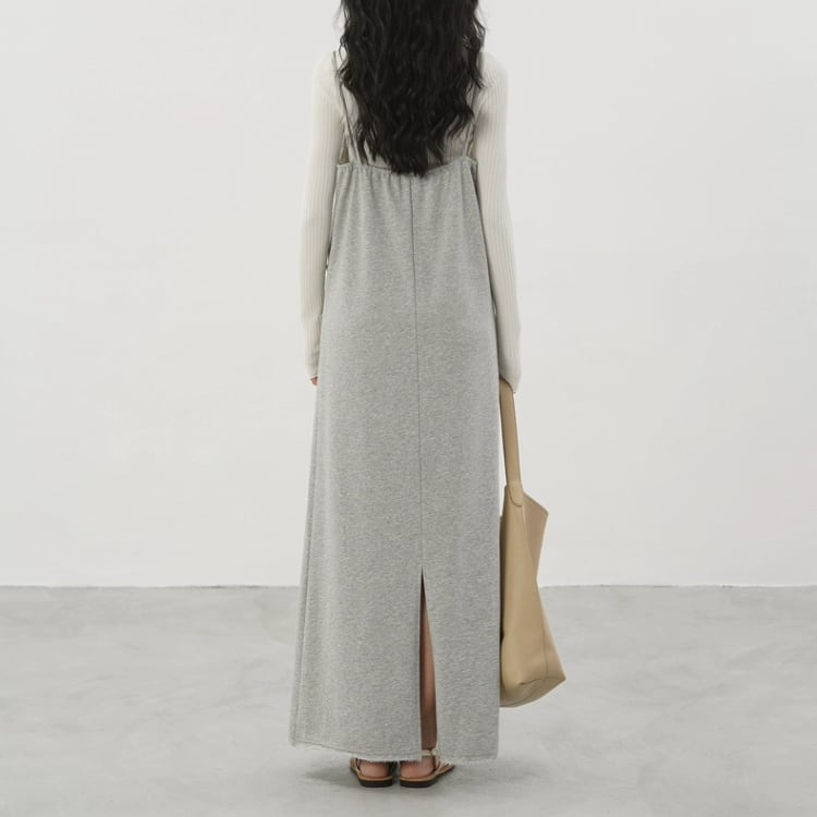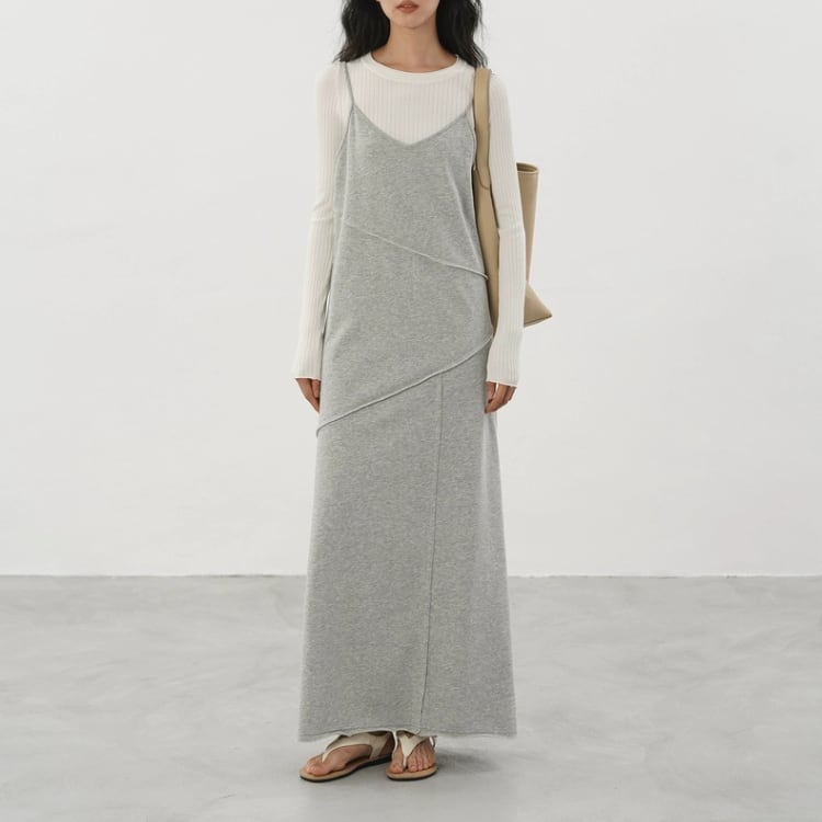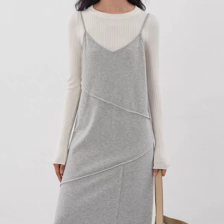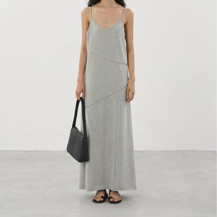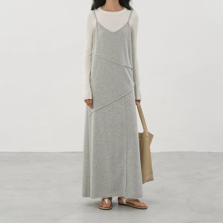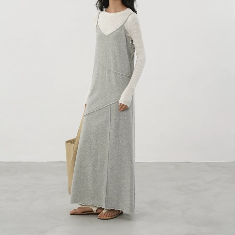 アシンメトリー切り替え裏毛マキシ丈キャミソールワンピース 1286