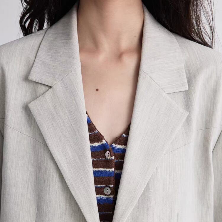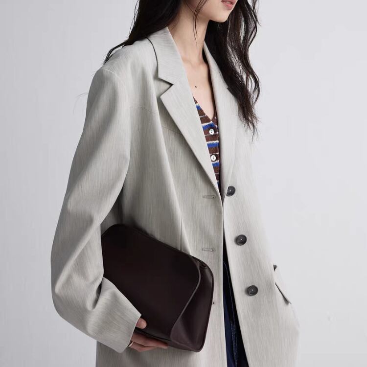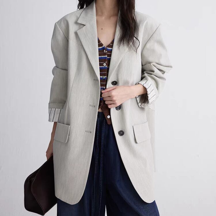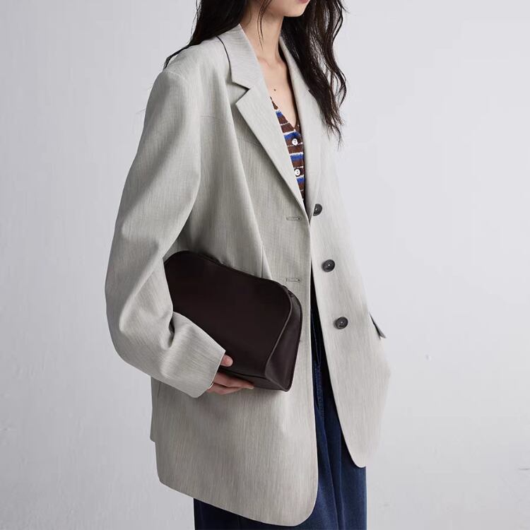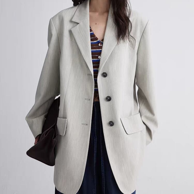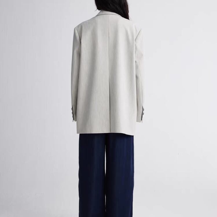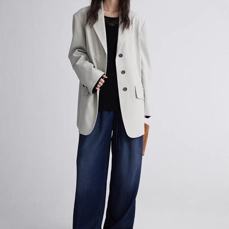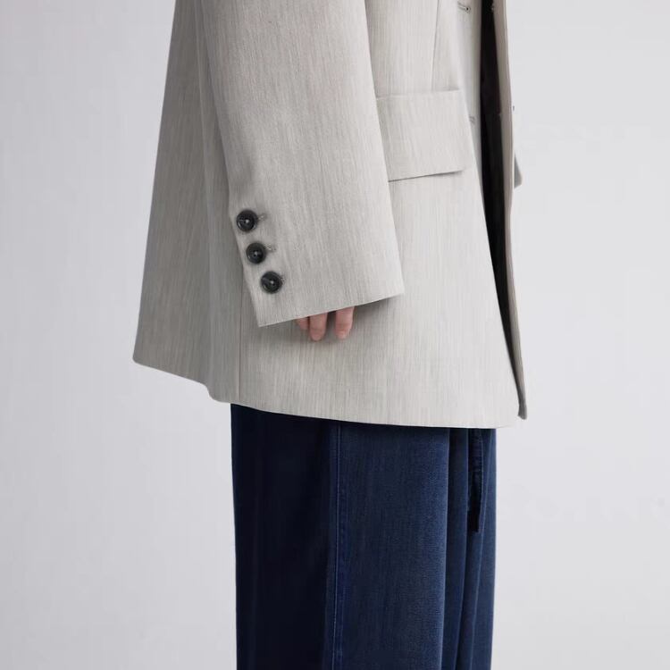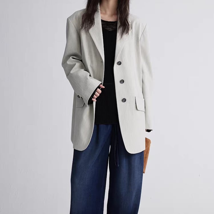 シングル釦のため、さっと羽織るだけでシックに決まります。