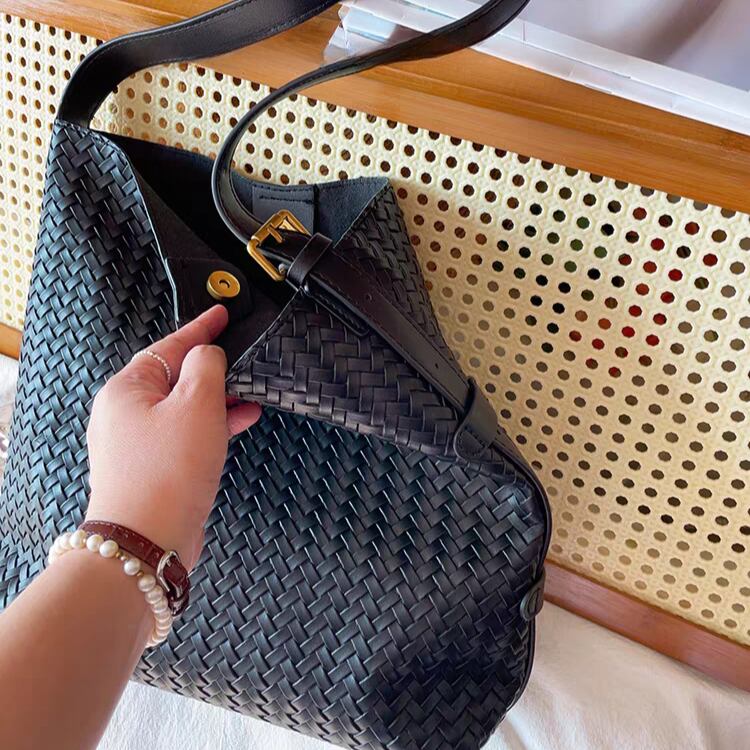 メッシュ編みのデザインが特徴で、シックでスタイリッシュな雰囲気を演出します。
