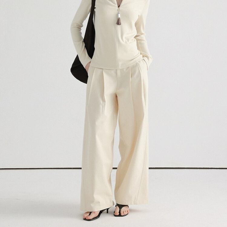 ツータックのデザインにより、着心地の良さを実感できる一枚です。