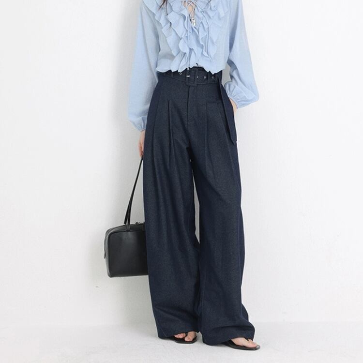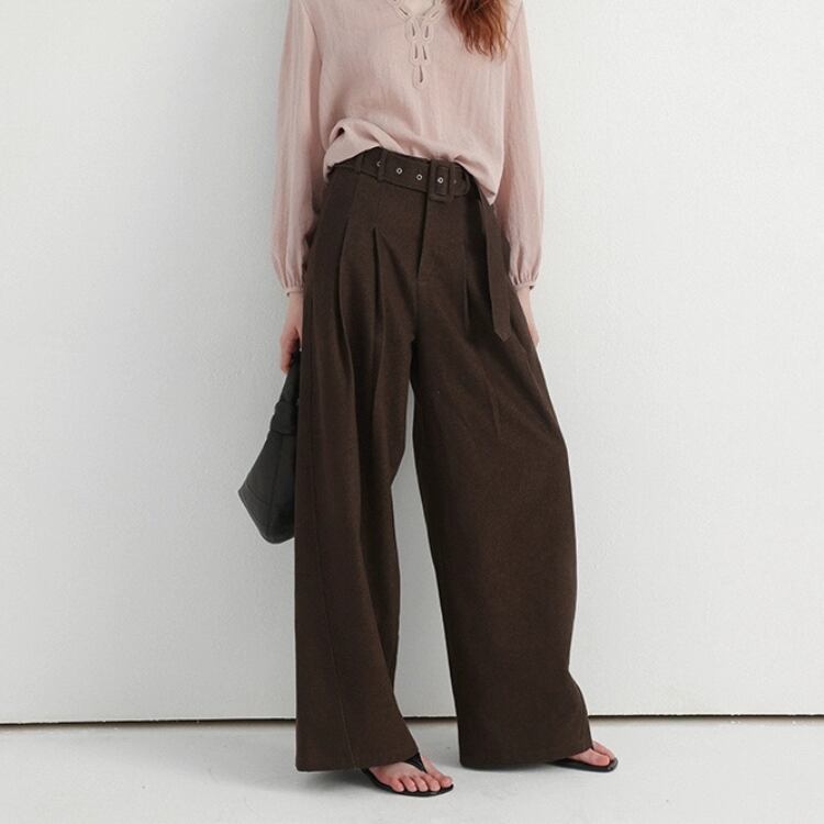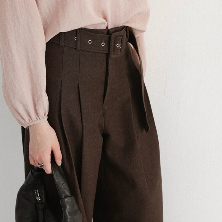 ベルト付きツータックワイドパンツ 1310