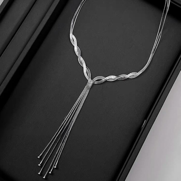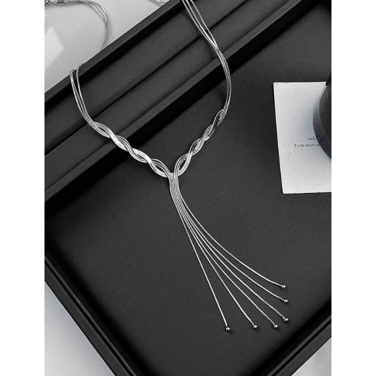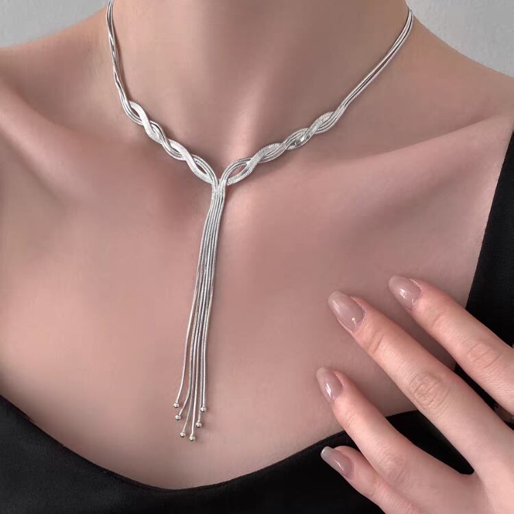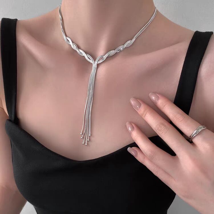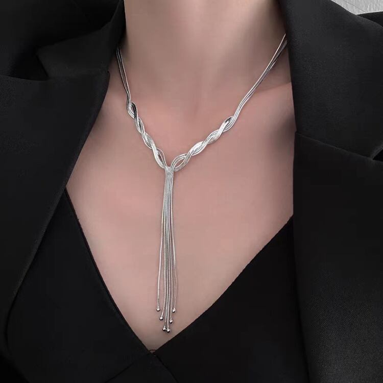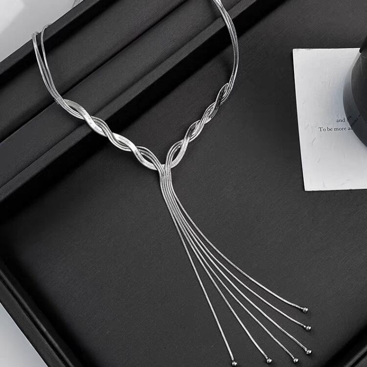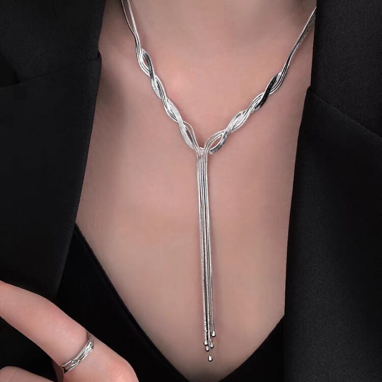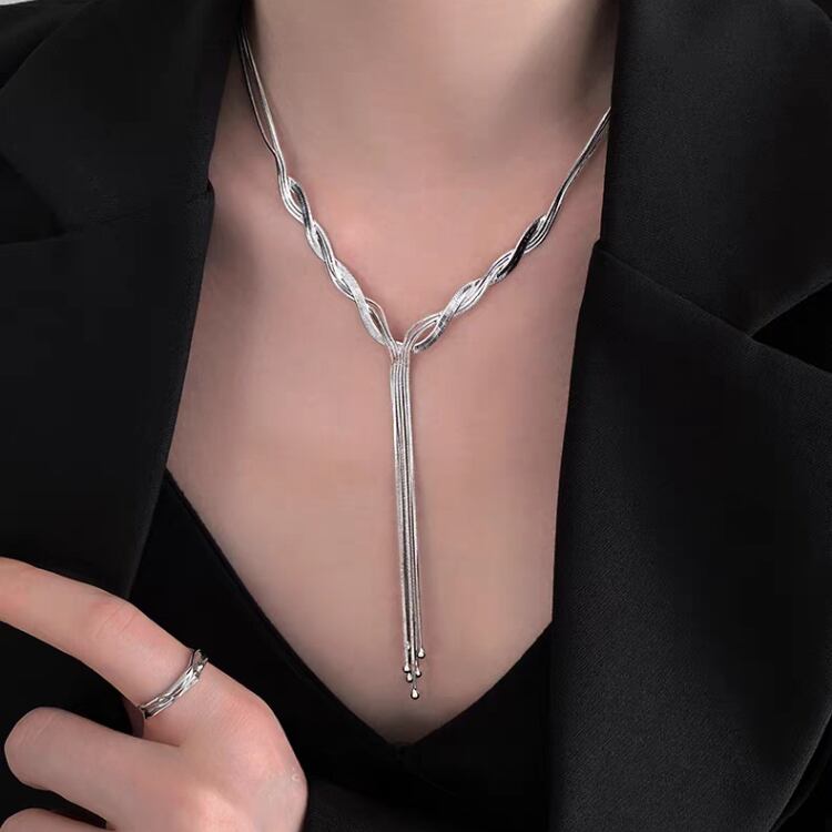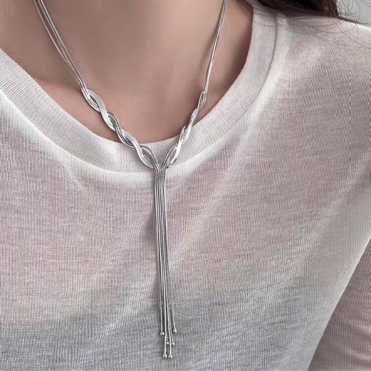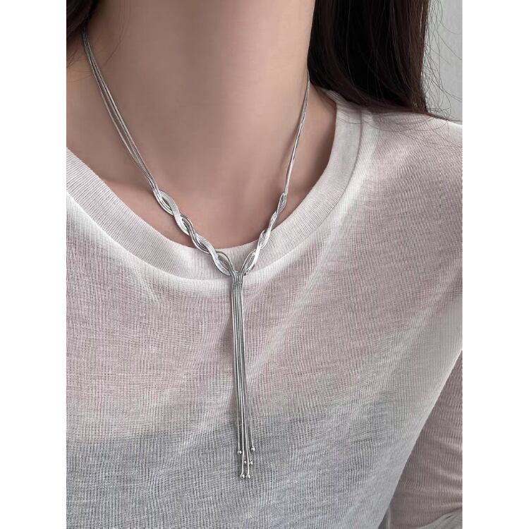 スネークチェーンを巧みに撚り合わせ、フラットスネークチェーンとツイストさせたスタイリッシュなY字ネックレス。