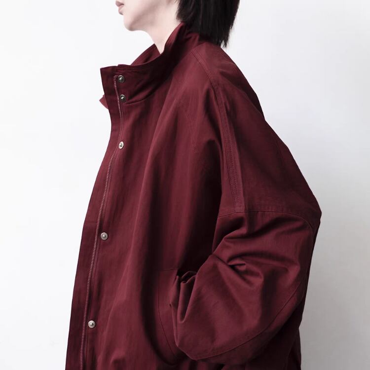 スタンドカラーが魅力的で、首元を暖かく保温しつつ、格好良く着映えます。