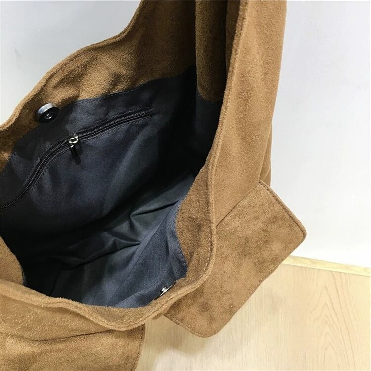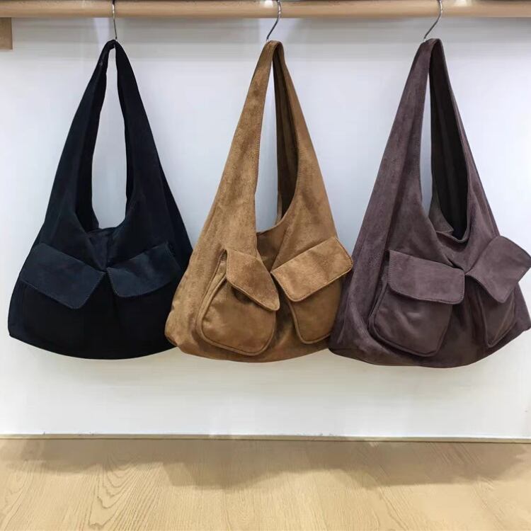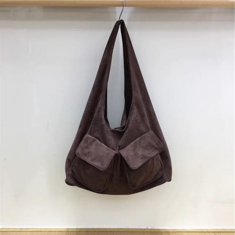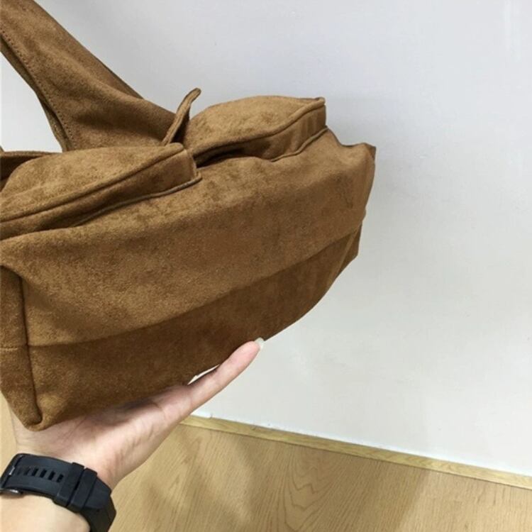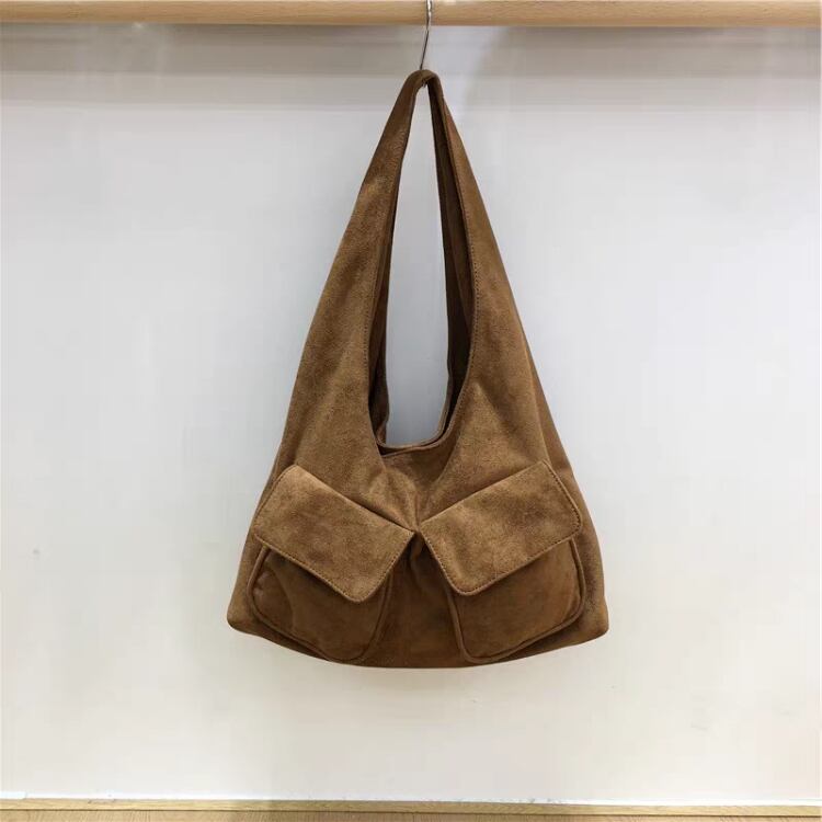 フェイクスエードフラップポケット付きラージショルダーバッグ 1321