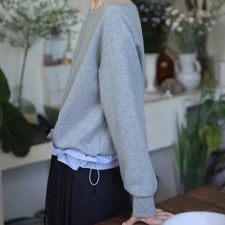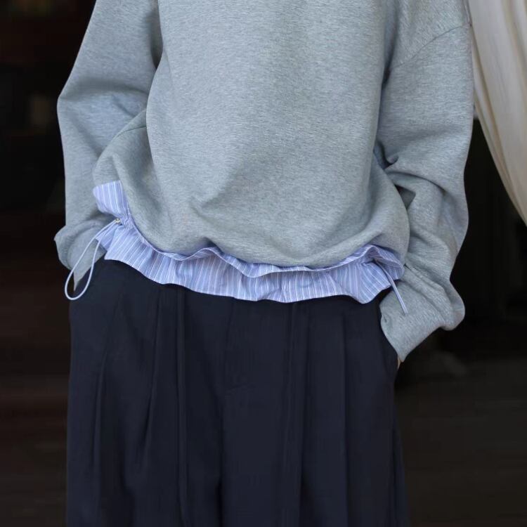 ボートネックドローコード付きストライプ柄布帛切替スウェット 1330