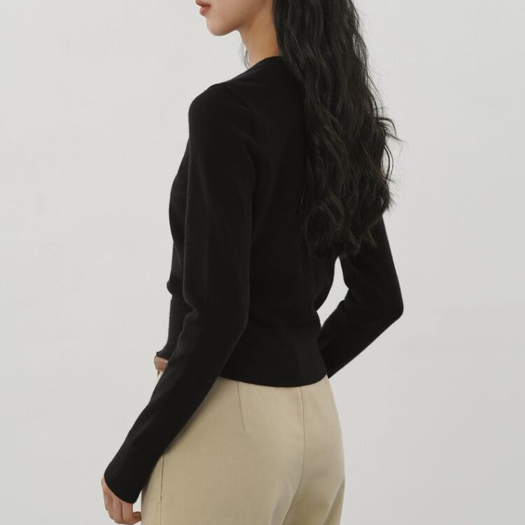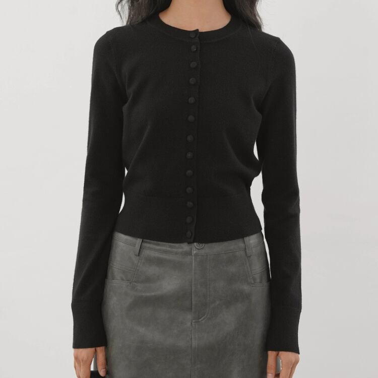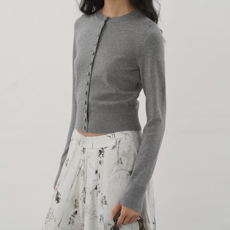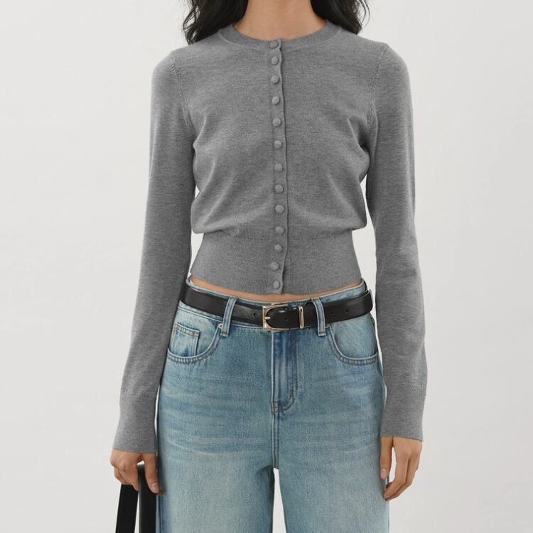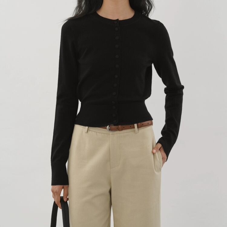 くるみ釦クルーネックコンパクトカーディガン 1334