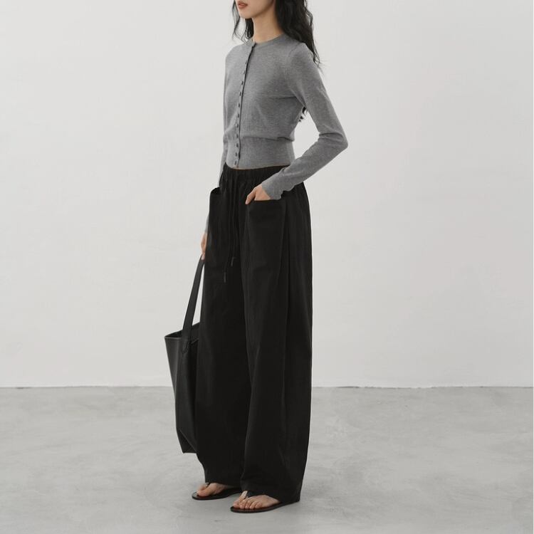 短めの着丈デザインは、ワイドパンツやスカートとの相性抜群。