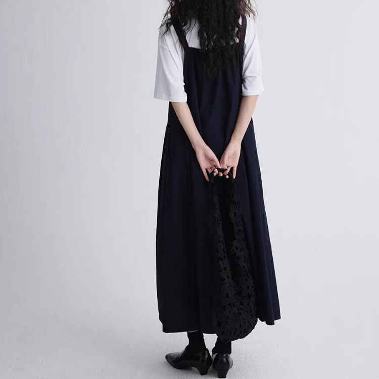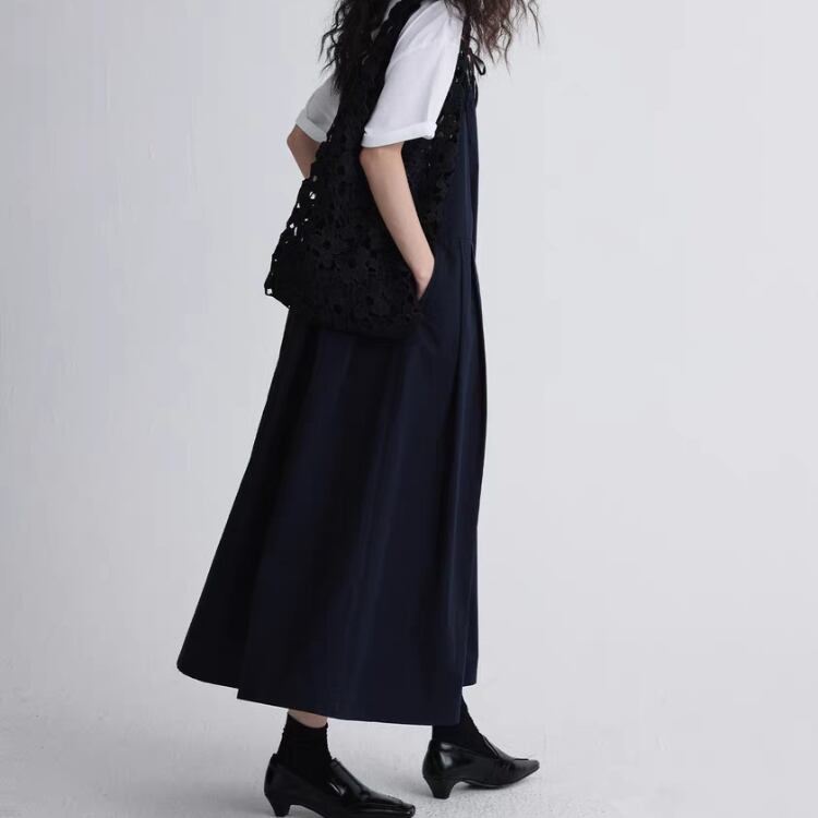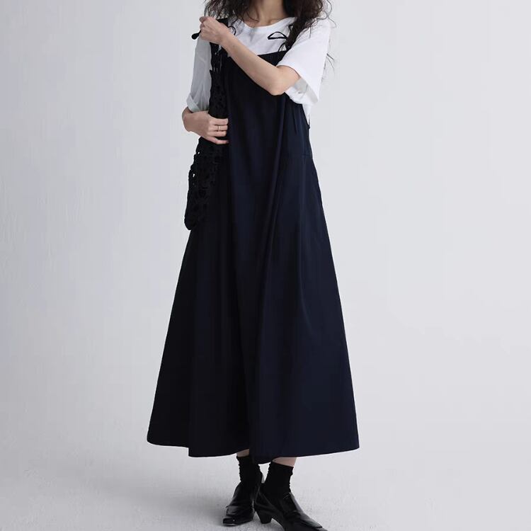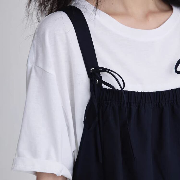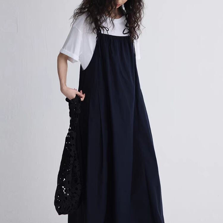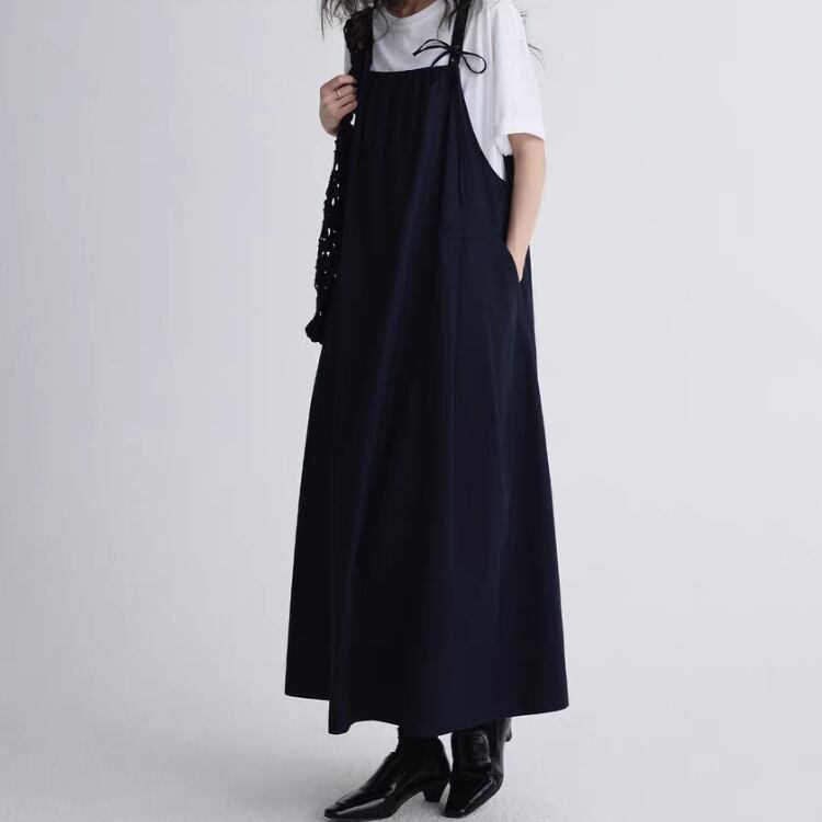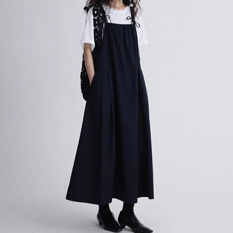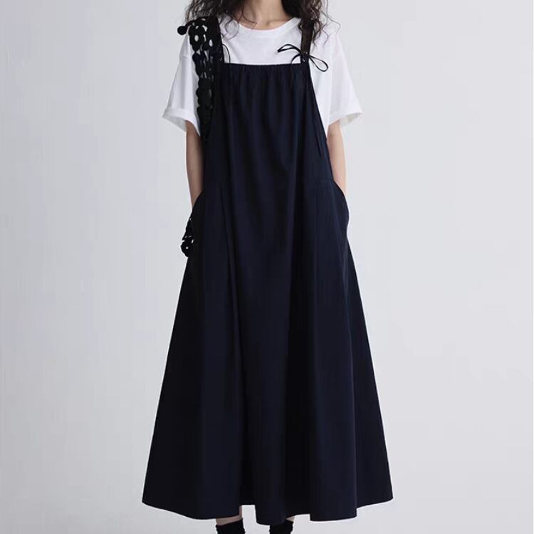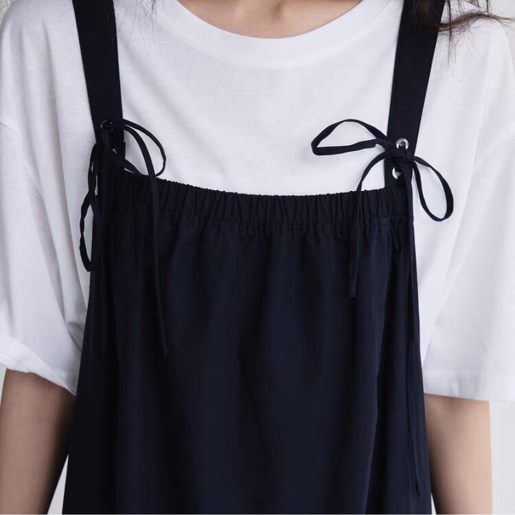 リボン付きストラップウエストサイドタック切替Aラインジャンパースカート 1343