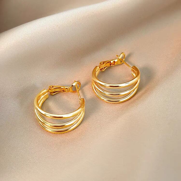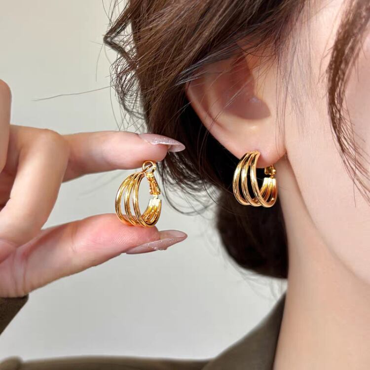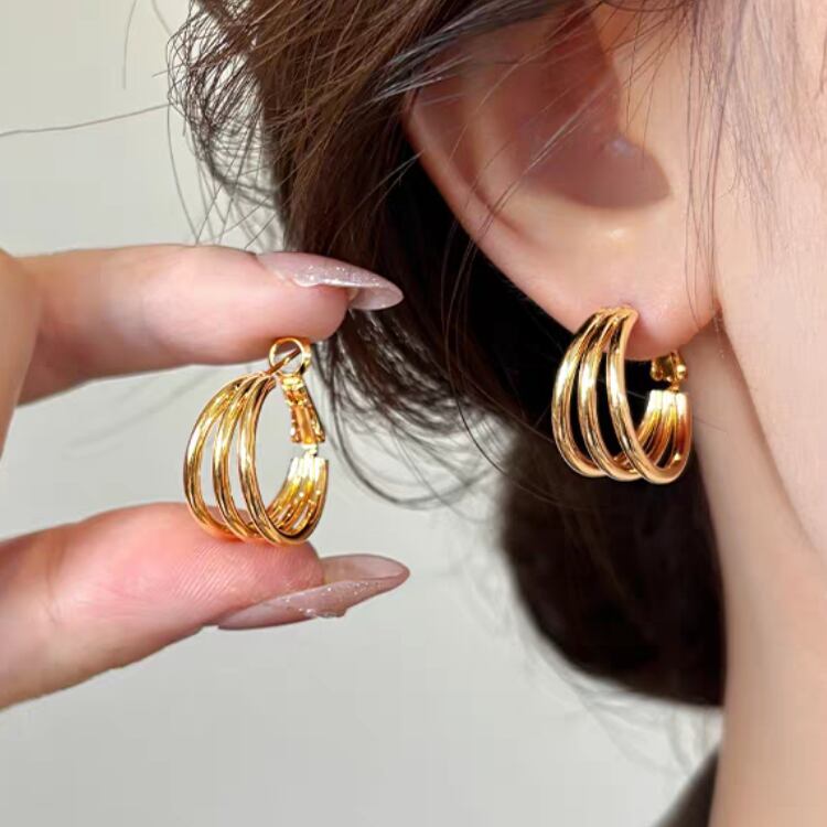 ワンタッチ3連風フープピアス 1345
