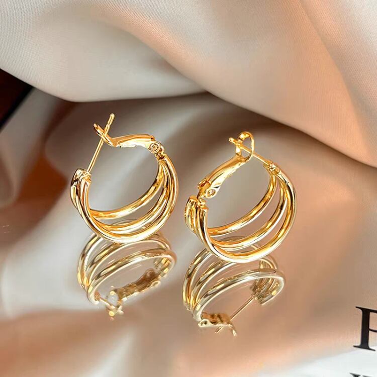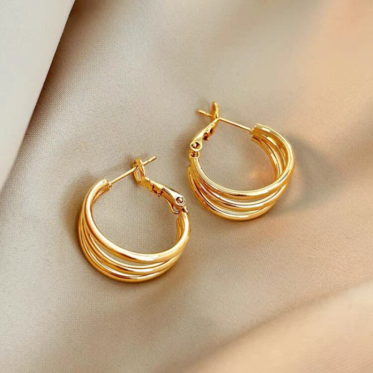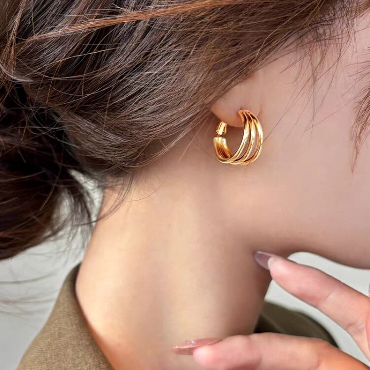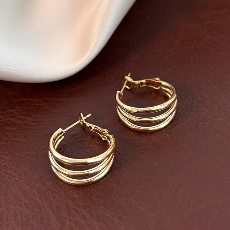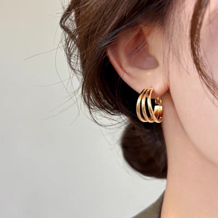 存在感たっぷりの3連のフープピアスです。