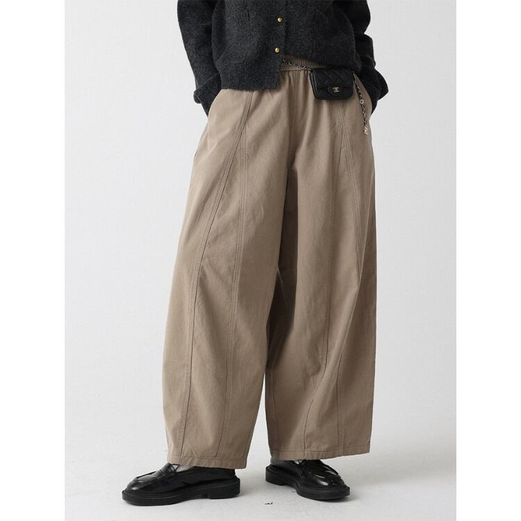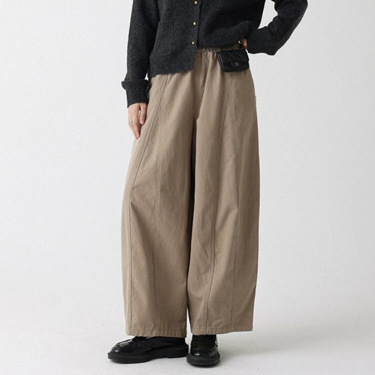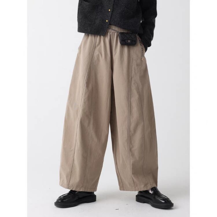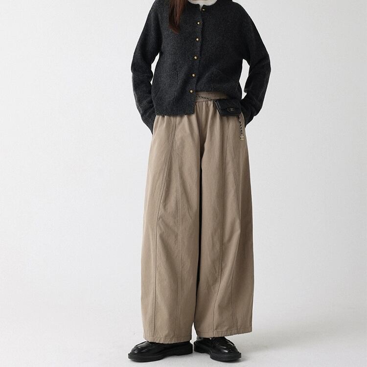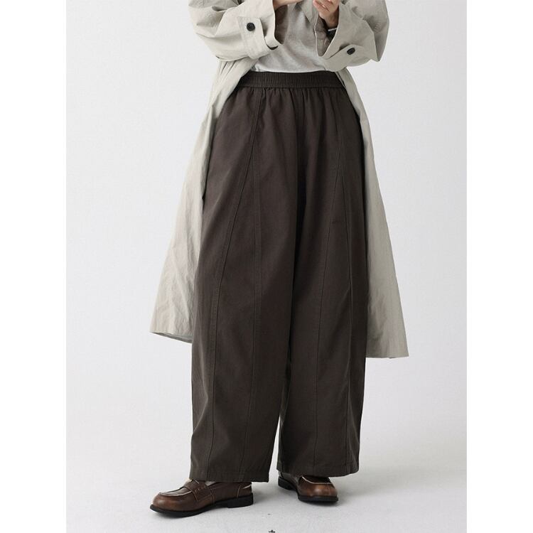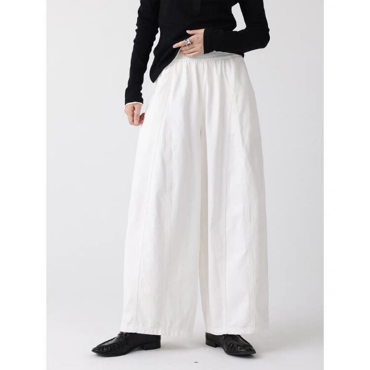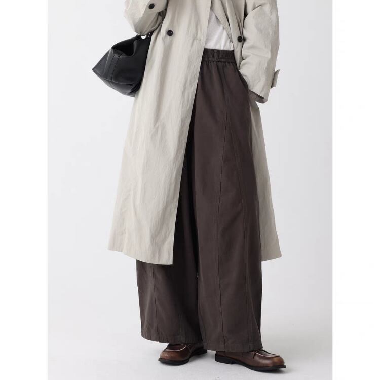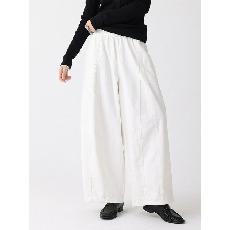 ウエストにゴムを配した楽な着心地のワイドパンツです。
