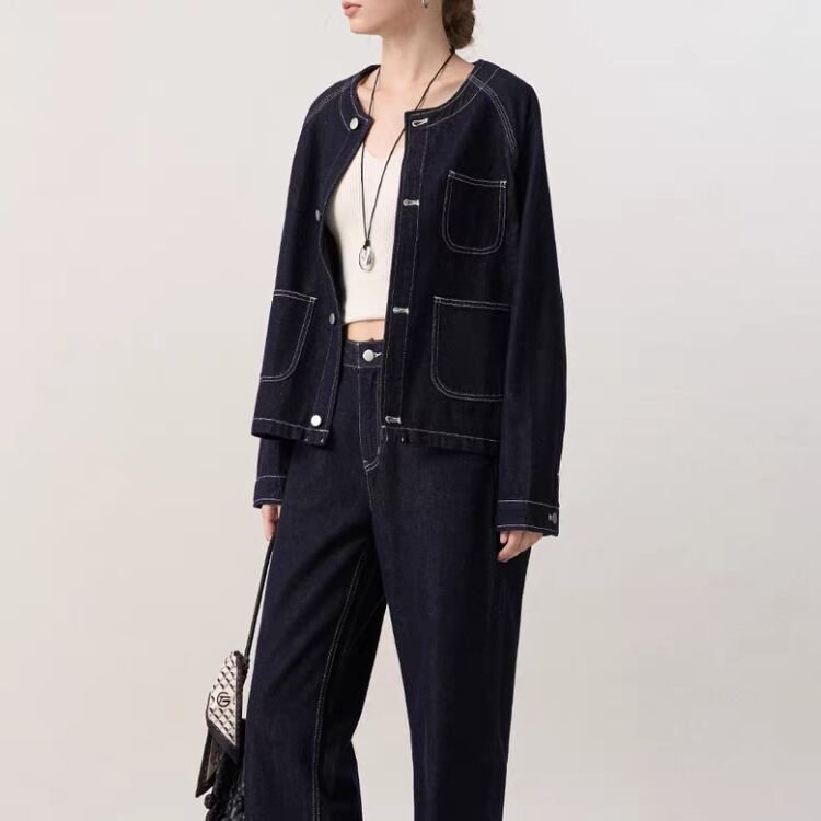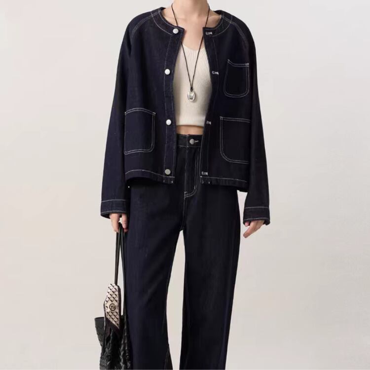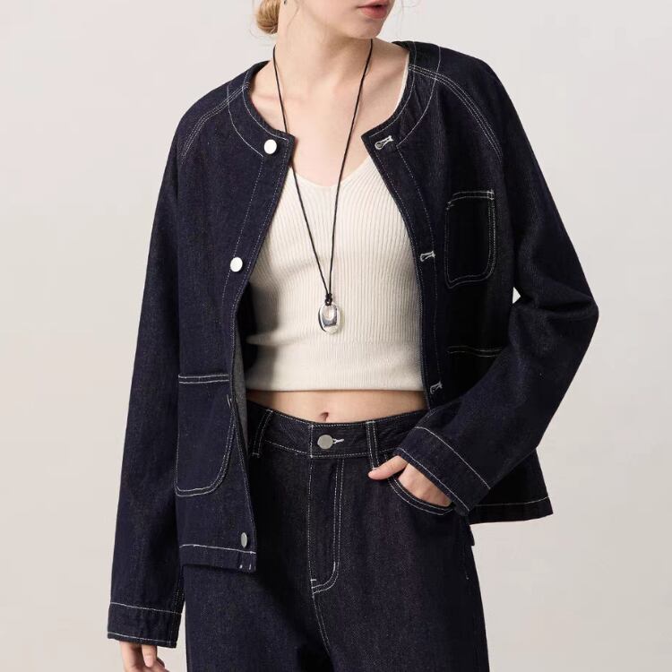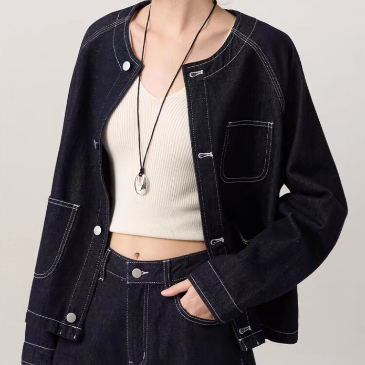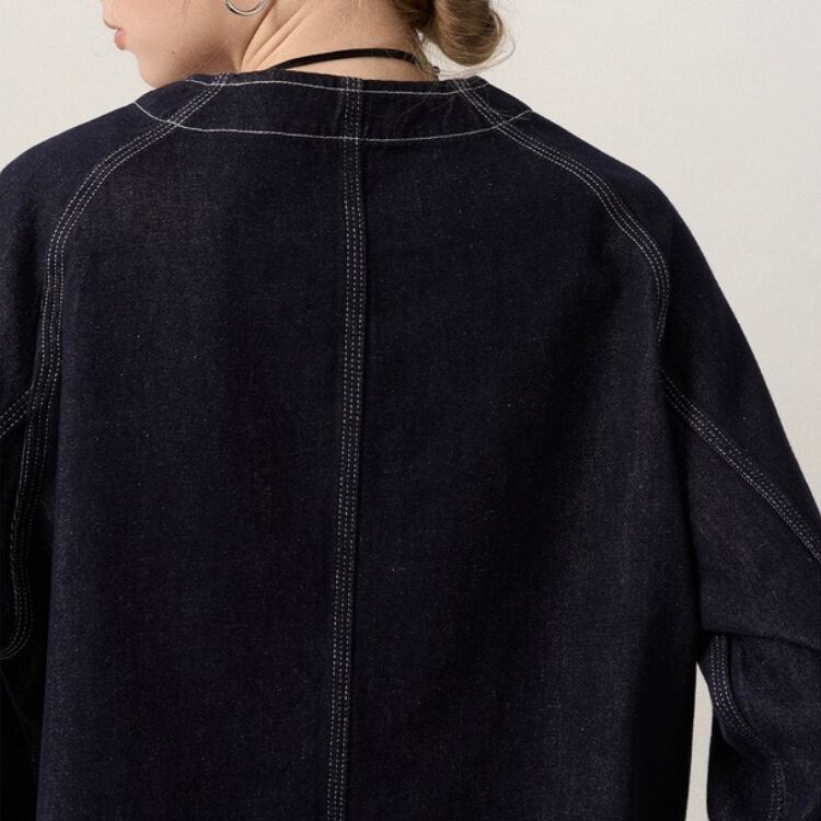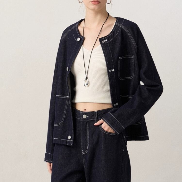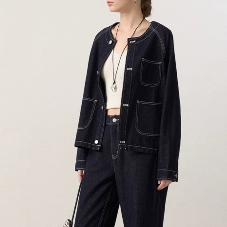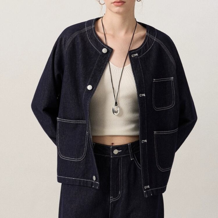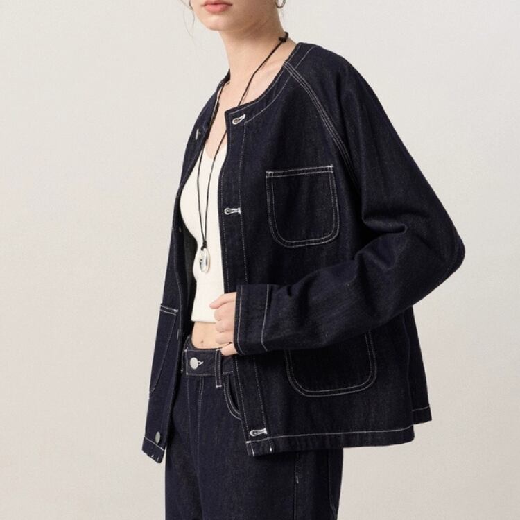 すっきりとしたノーカラーが特徴で、どんなスタイルにも合わせやすいアイテムです。