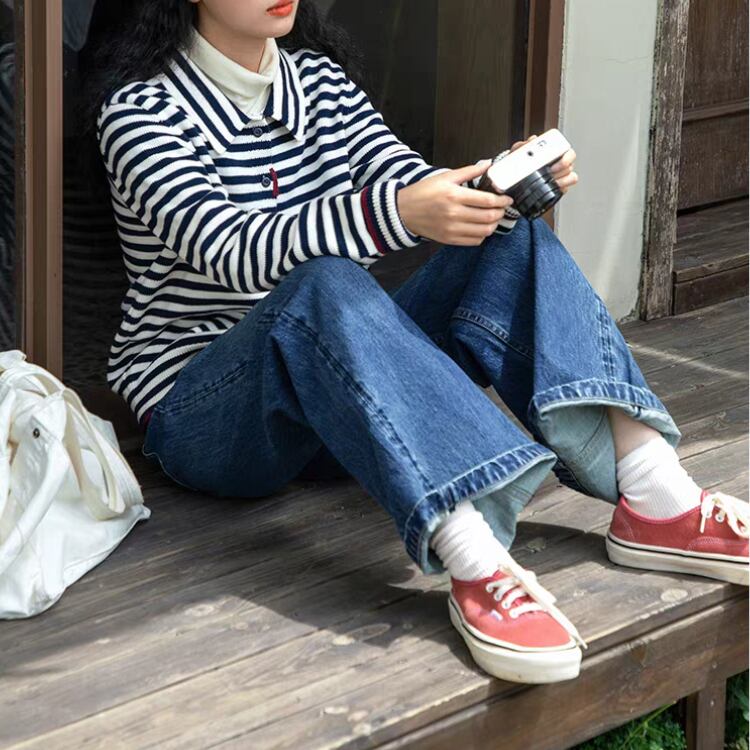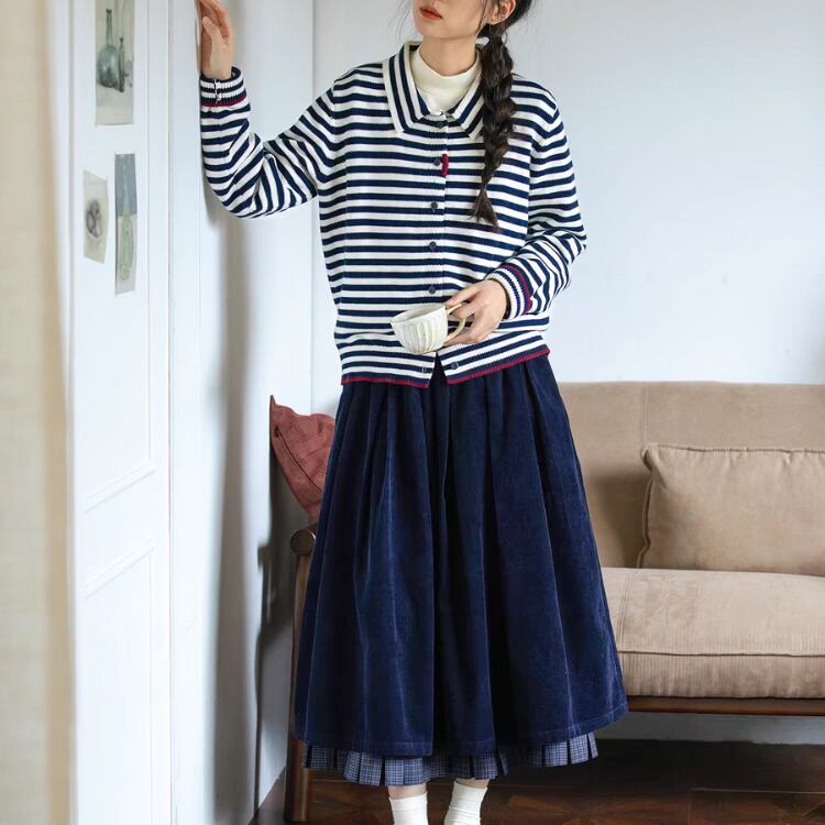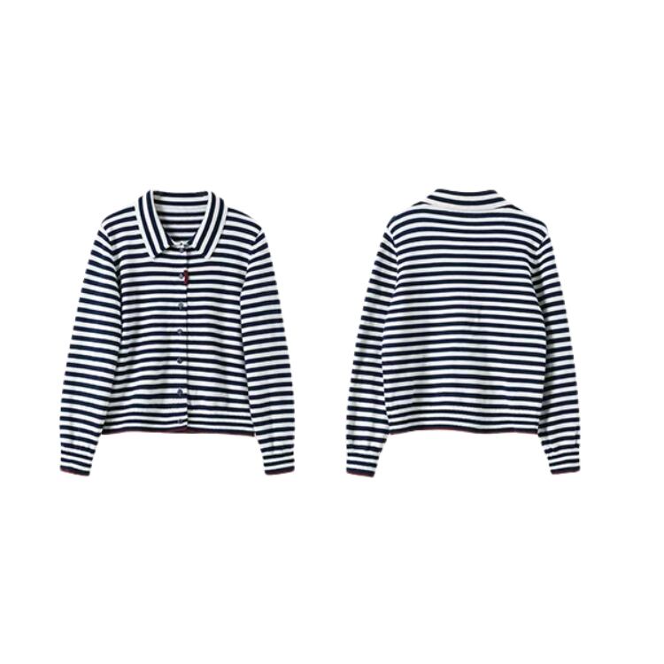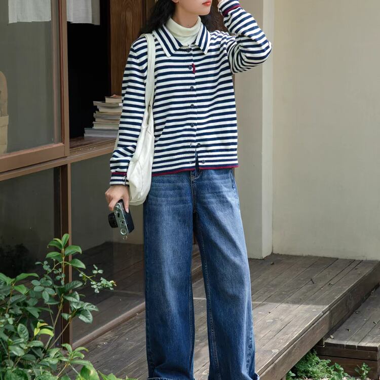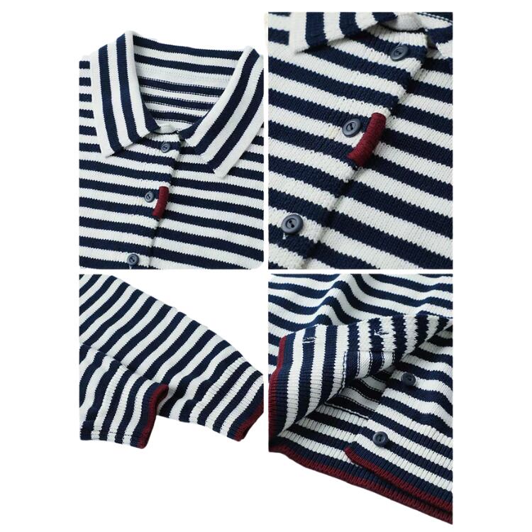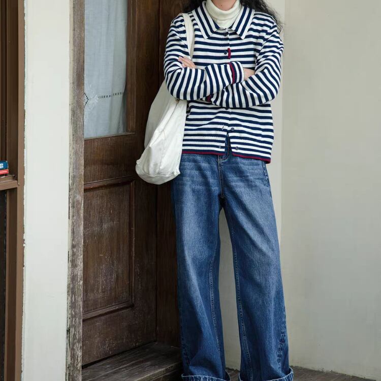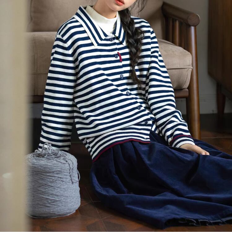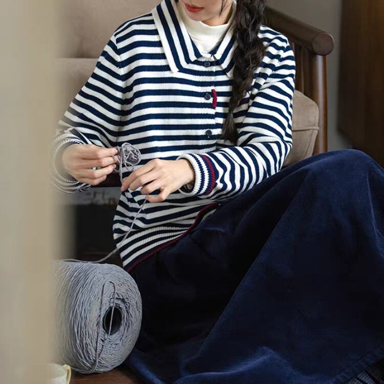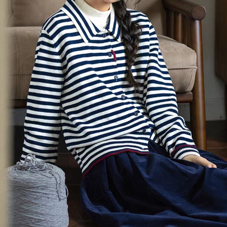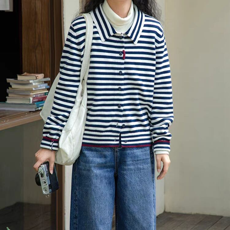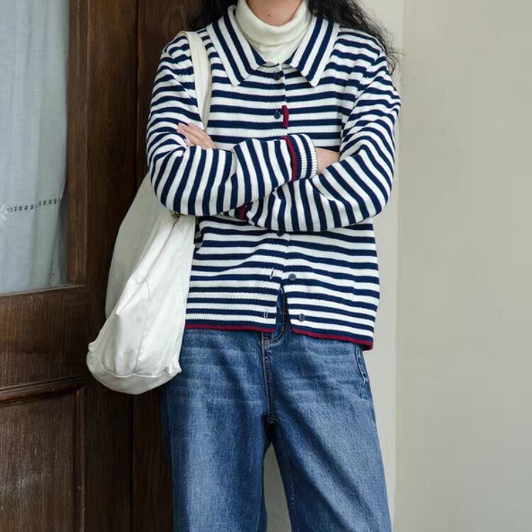 ボーダー柄襟付きニットカーディガン 1348