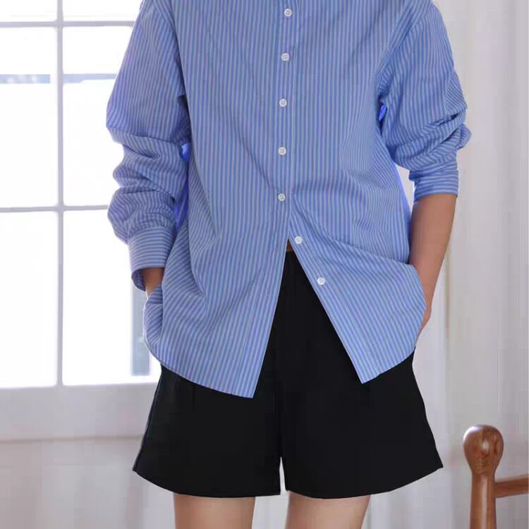 ブルーのストライプ柄が爽やかで、どんなシーンでも活躍する一着です。