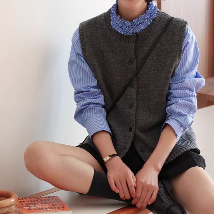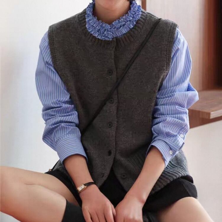 華やかなタタキフリルを襟元にあしらい、上品で洗練された印象を与えます。