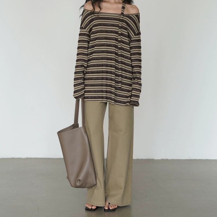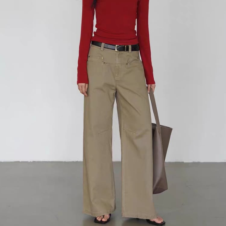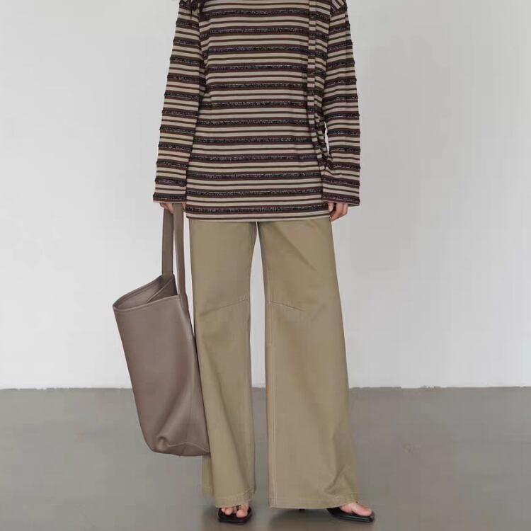 前面のヨーク切り替えが絶妙なデザインアクセントとなり、コーディネートに華やかさを添えます。