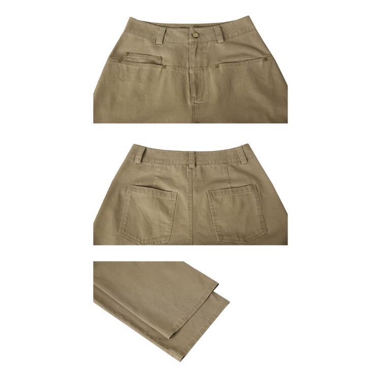 さりげない膝上のダーツが内腿をすっきりと見せ、広がりすぎないシルエットが下半身を美しく引き立てます。