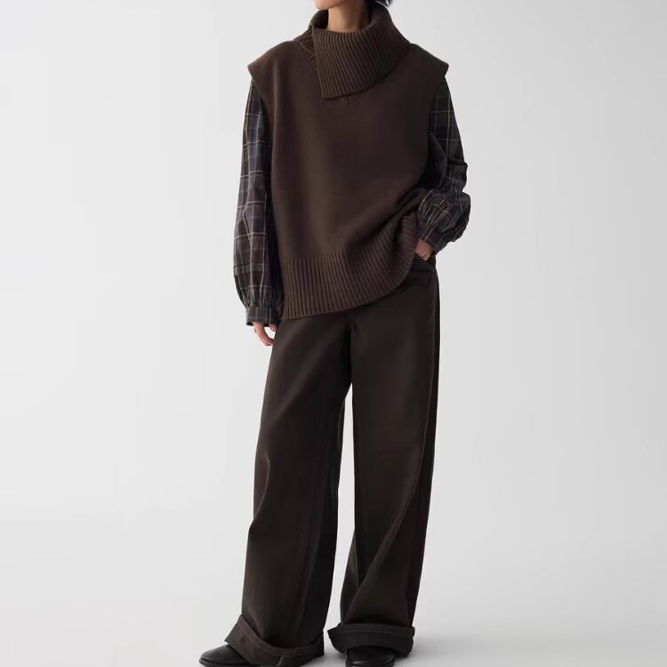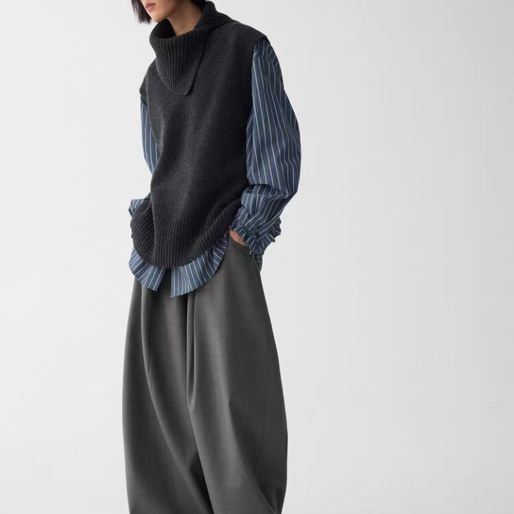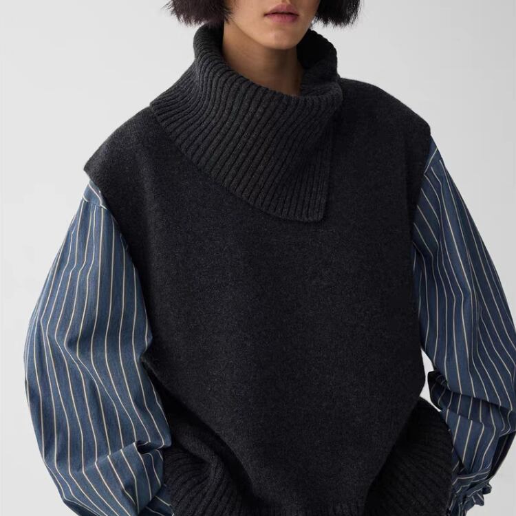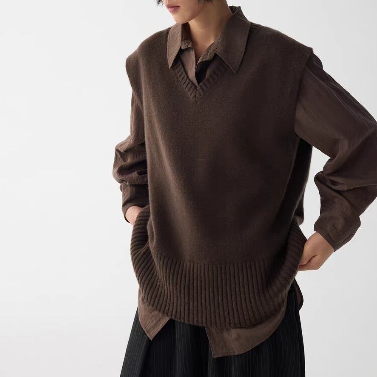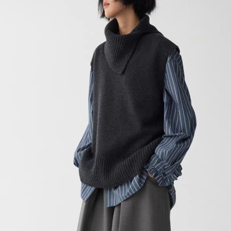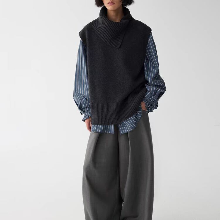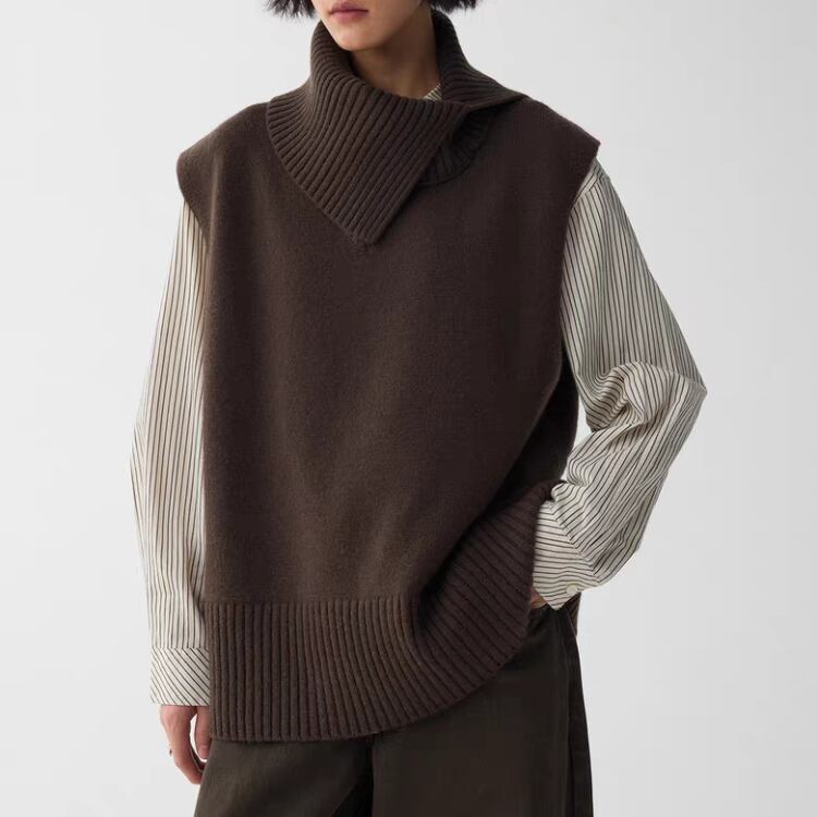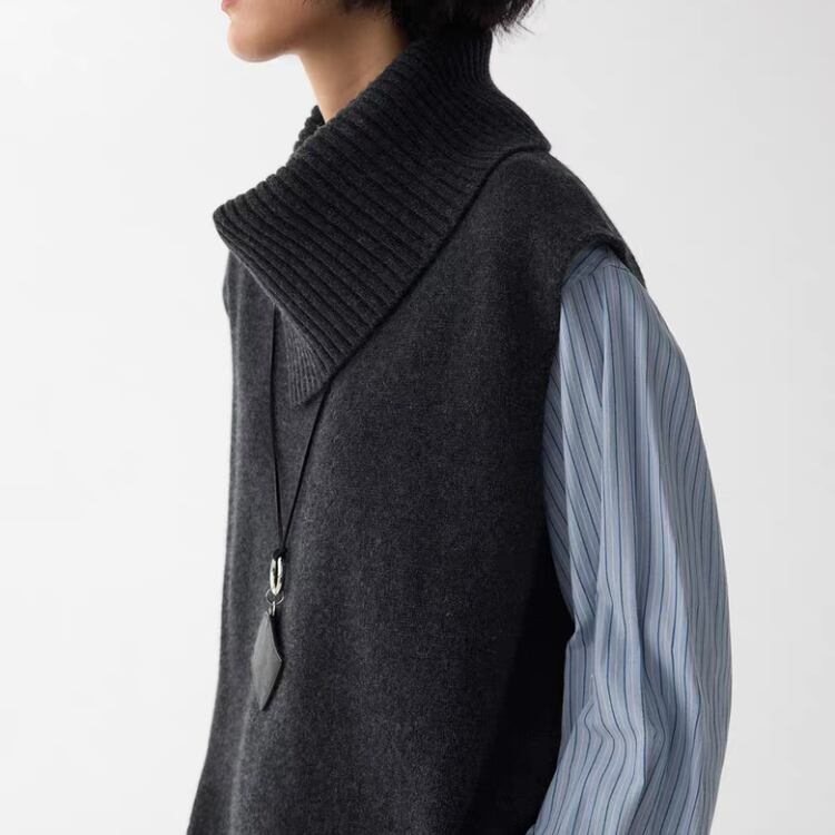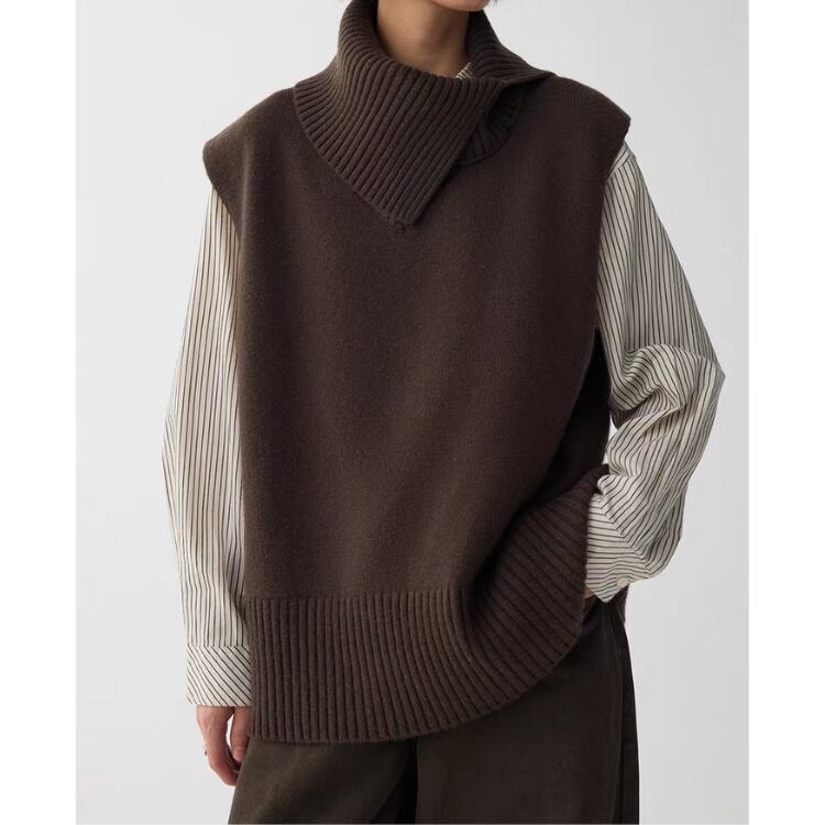 オフタートルとVネック、2つのスタイルが楽しめるニットベストです。