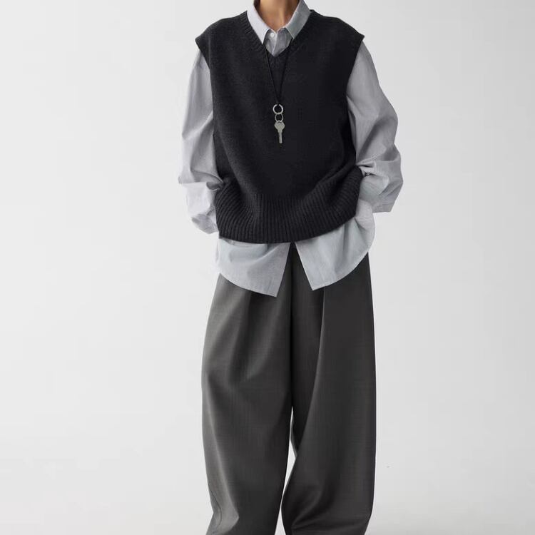 トラッドな雰囲気を醸し出すVネックは、合わせやすく活用度が高いです。