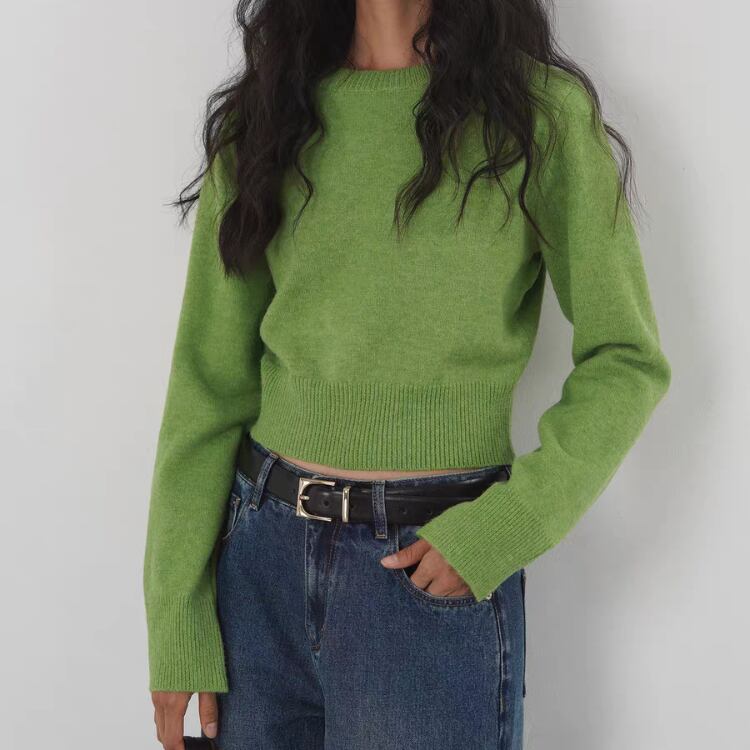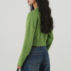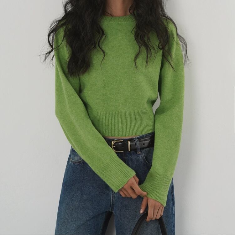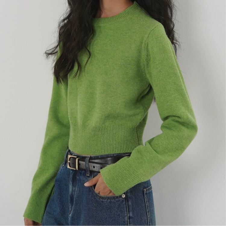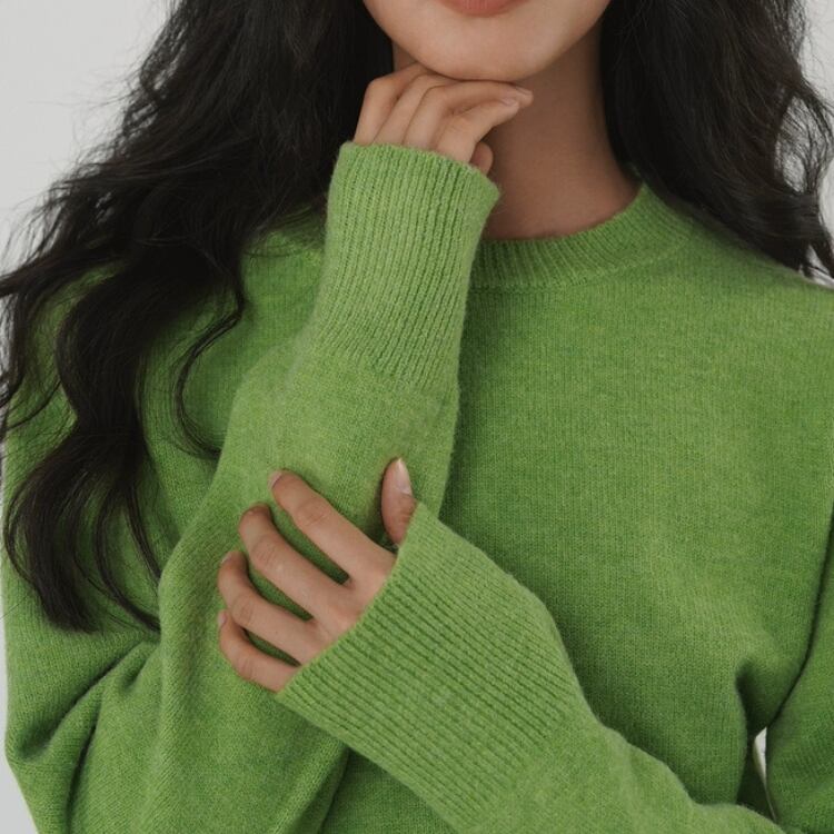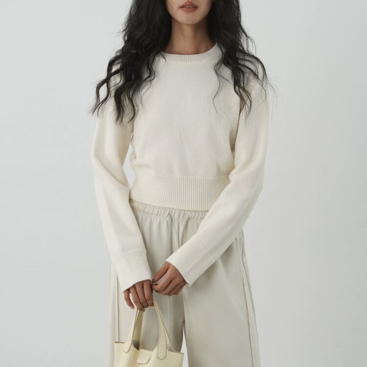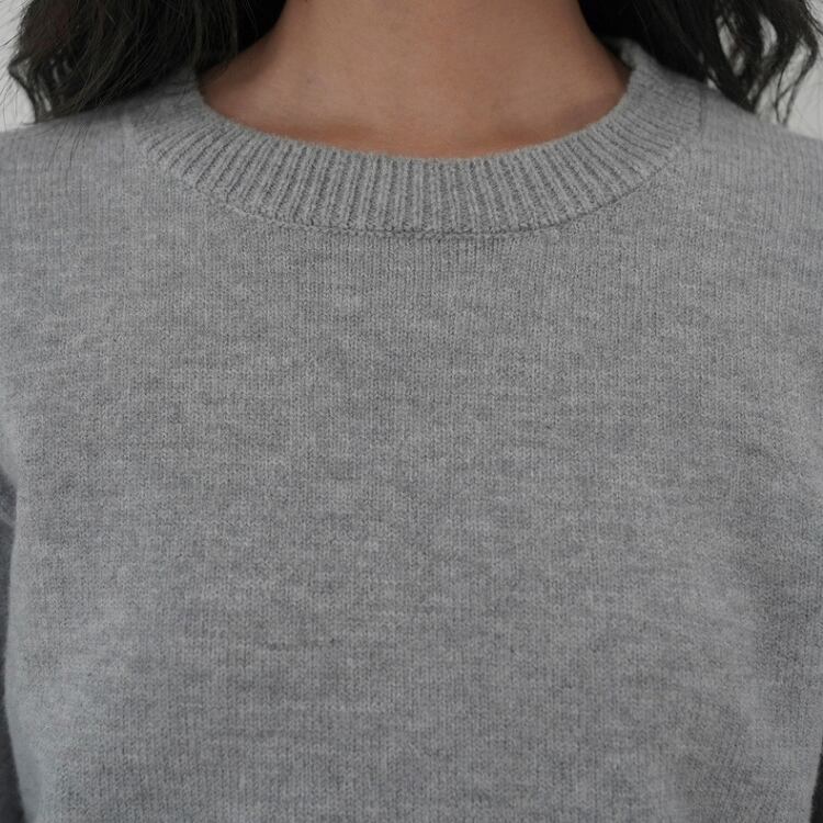 カジュアルだけでなく、シックな装いにも活用できる万能ニットです。