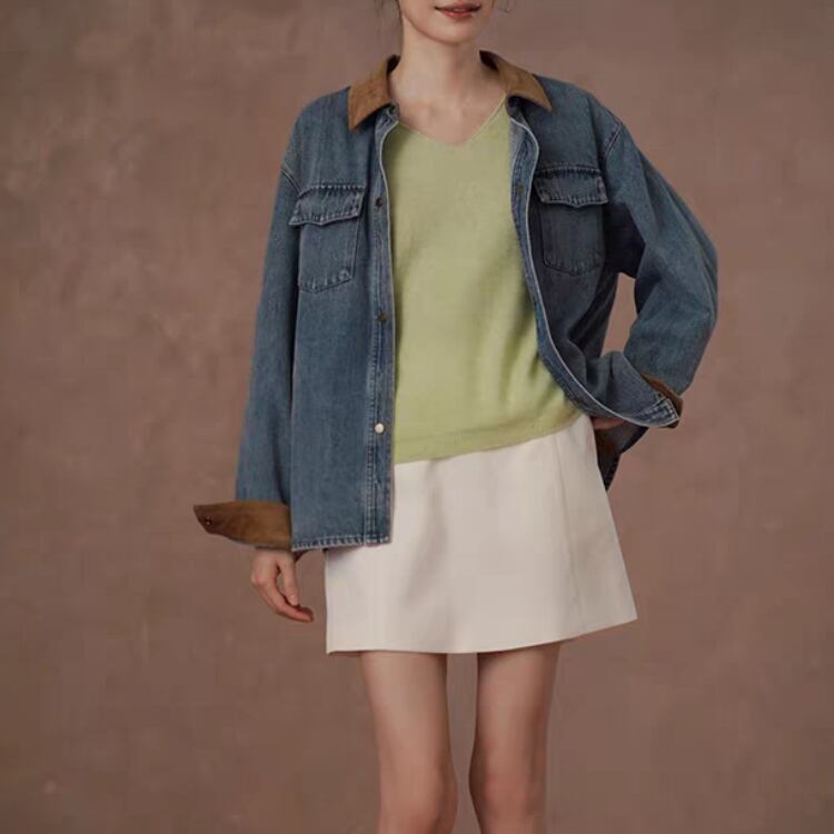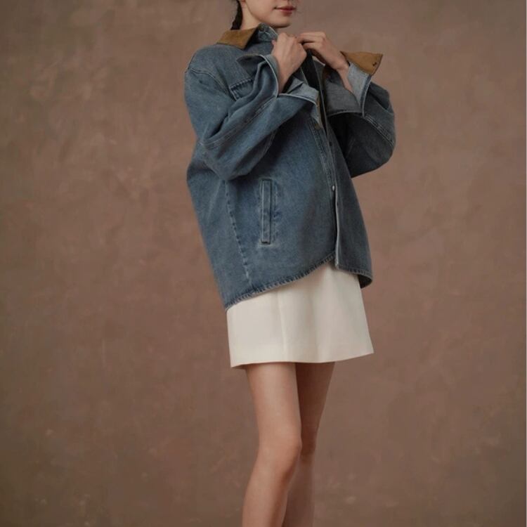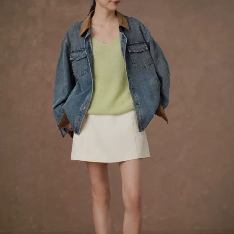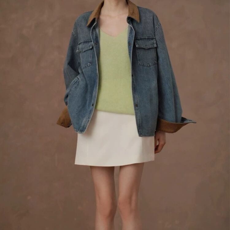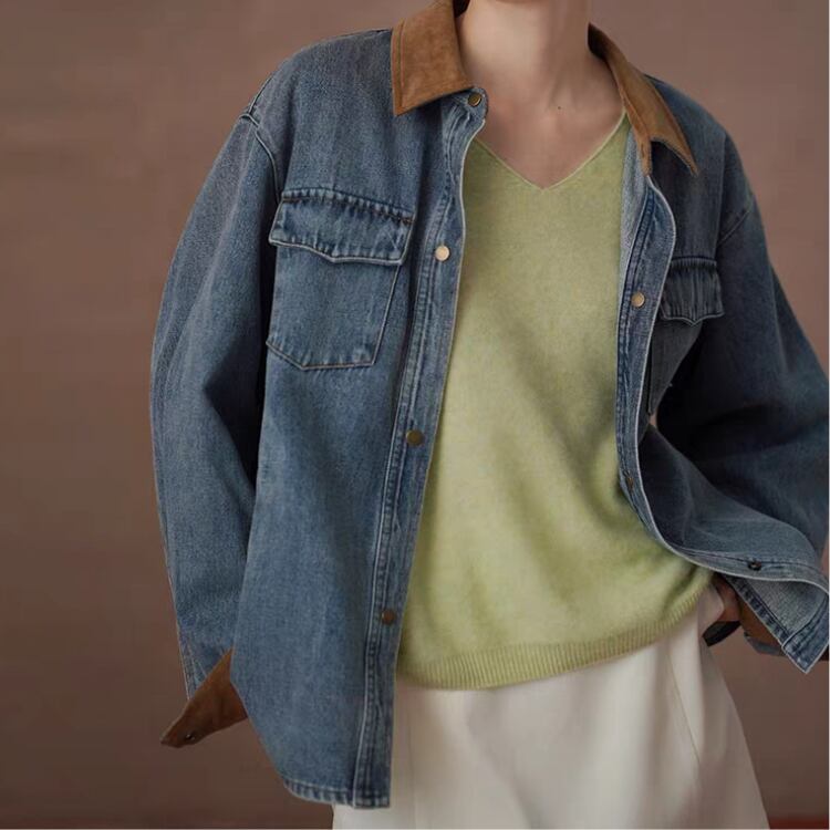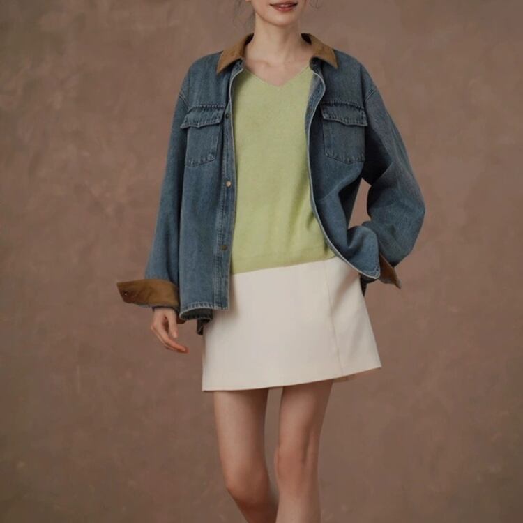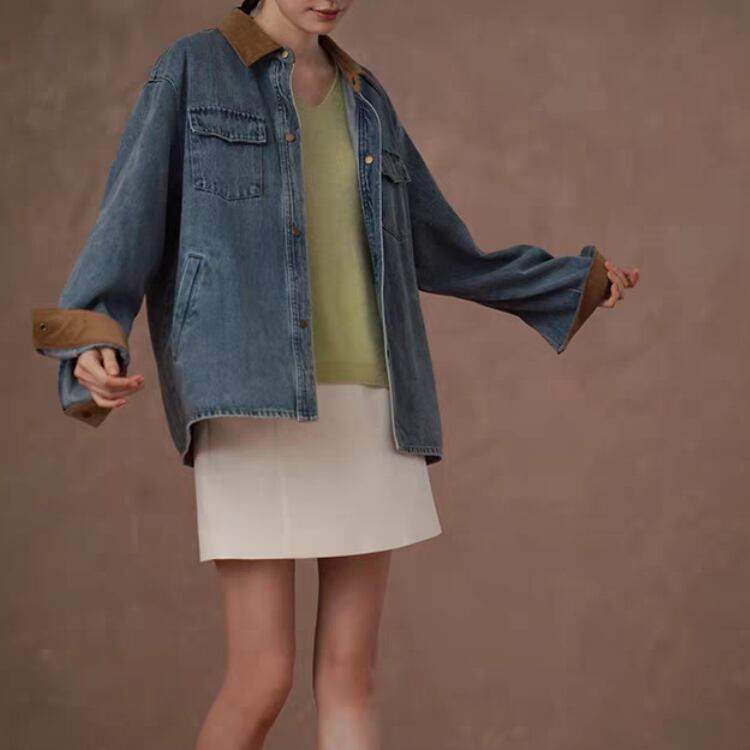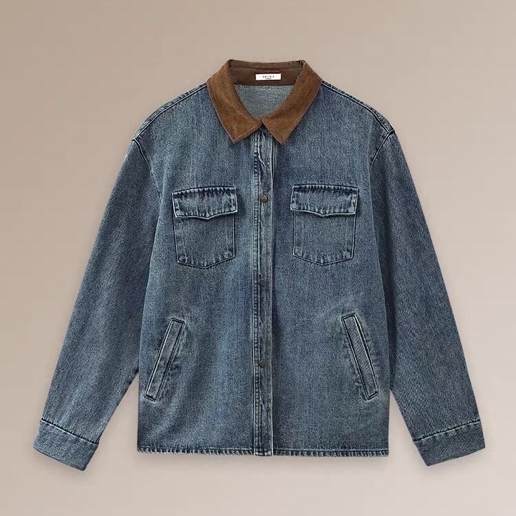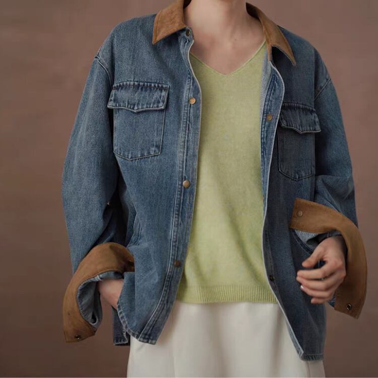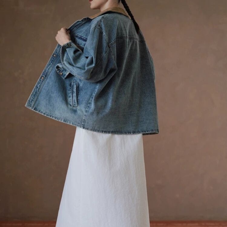 襟袖口裏コーデュロイ切替ウォッシュドデニムジャケット 1388