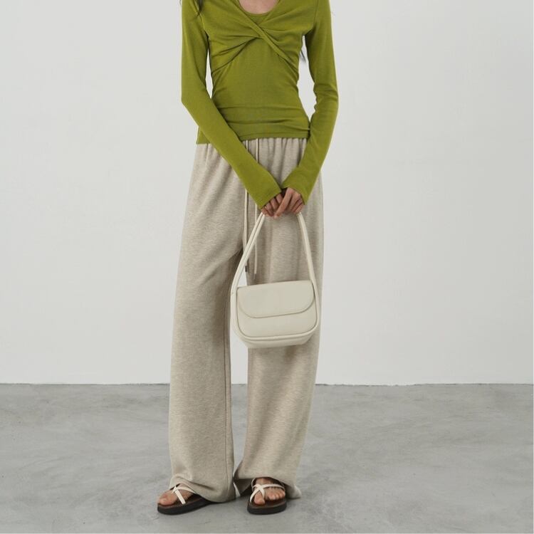 落ち感のあるダンボールスウェット生地を使用した、軽やかで動きやすいイージーパンツ。