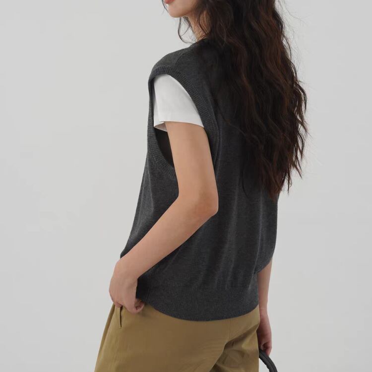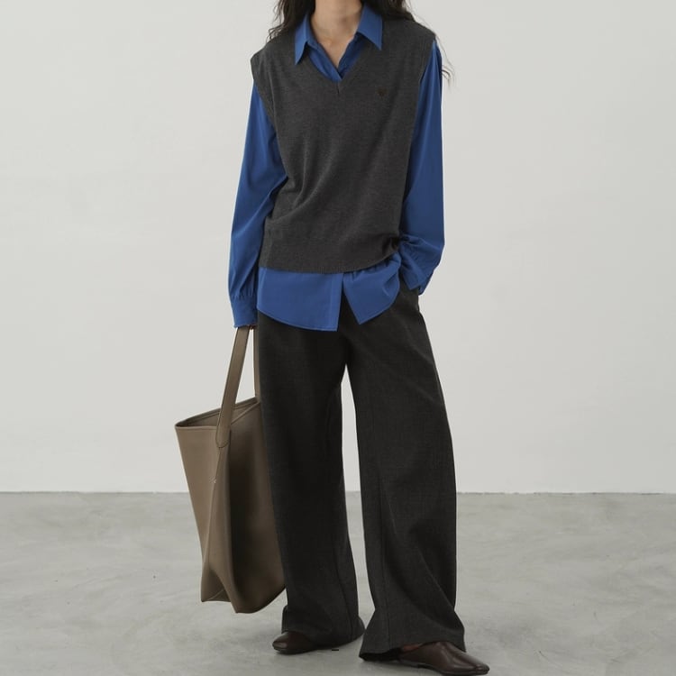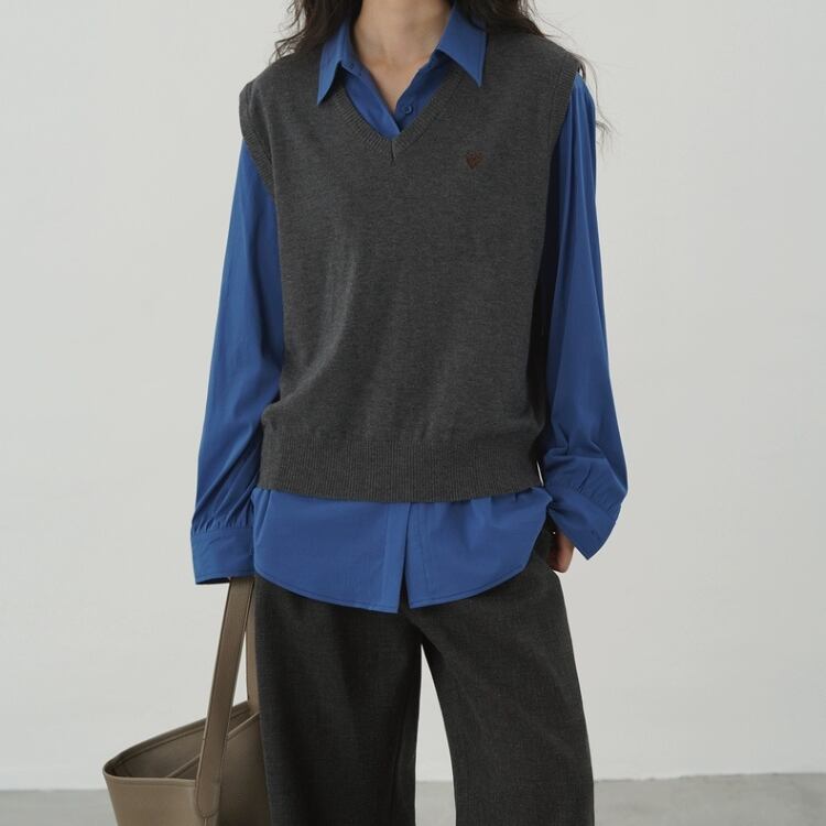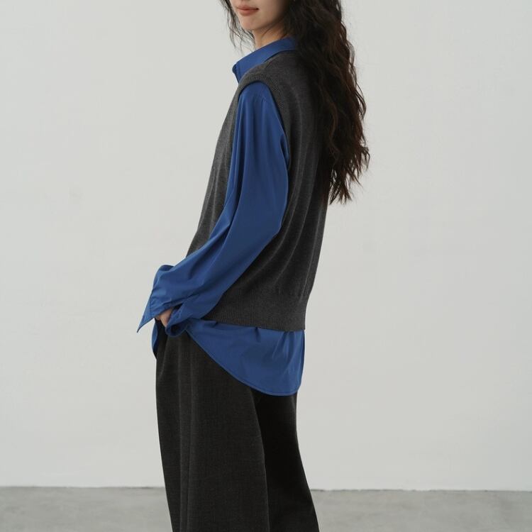 深すぎないVネックデザインは、シャツカラーとの相性が良く、トレンドのレイヤードスタイルを楽しんでいただけます。