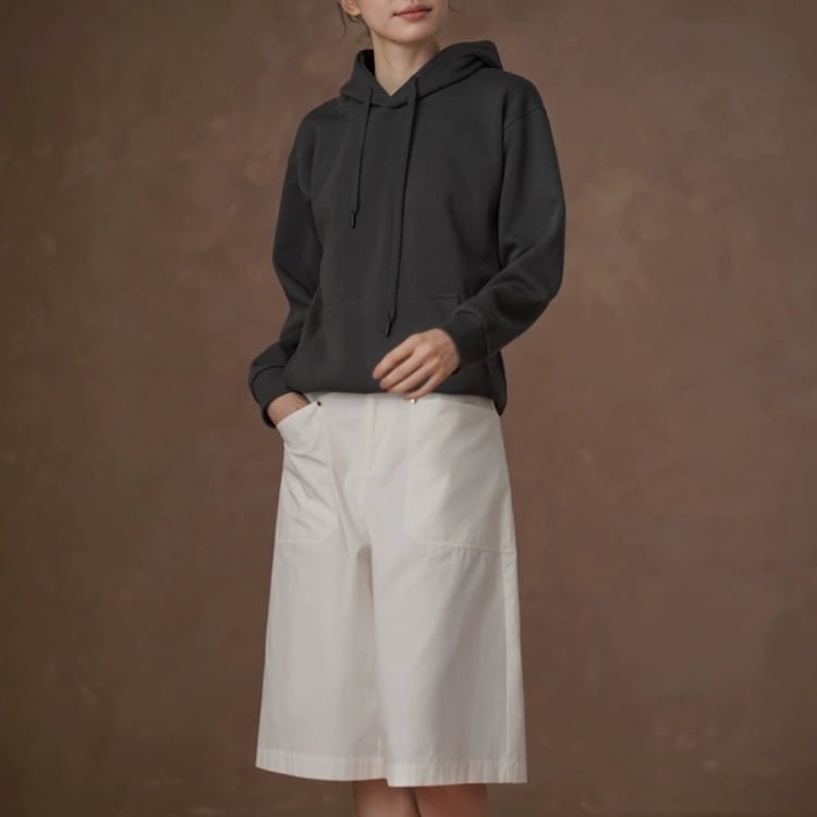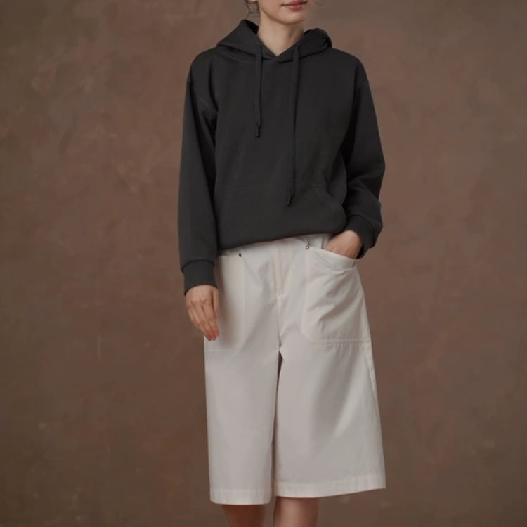 カンガルーポケットは、実用性だけでなく、スタイルのアクセントとしても映えます。