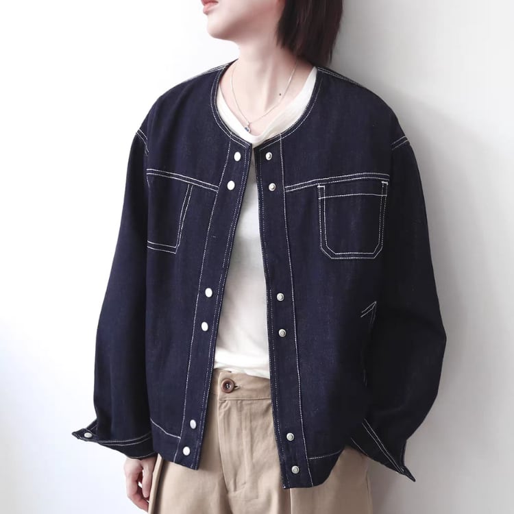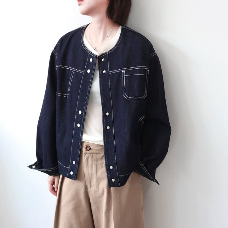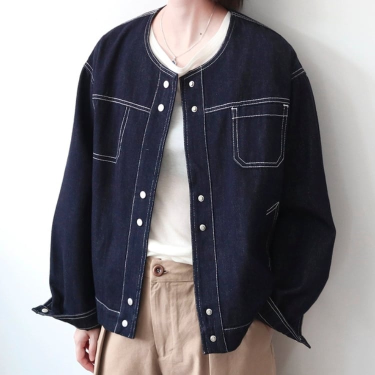 ノーカラーデニムジャケット 1400