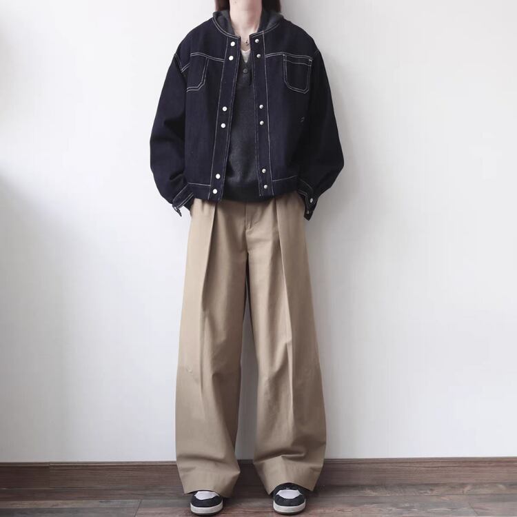 ニットやスウェットなどのやや厚手インナーの上にも羽織ることができ、肌寒い季節も快適にお過ごしいただけます。