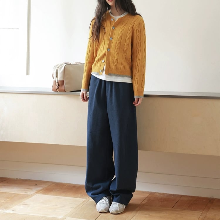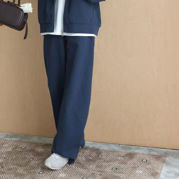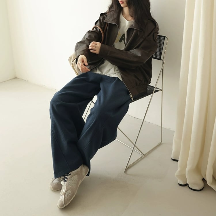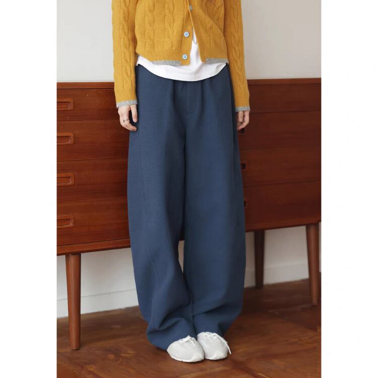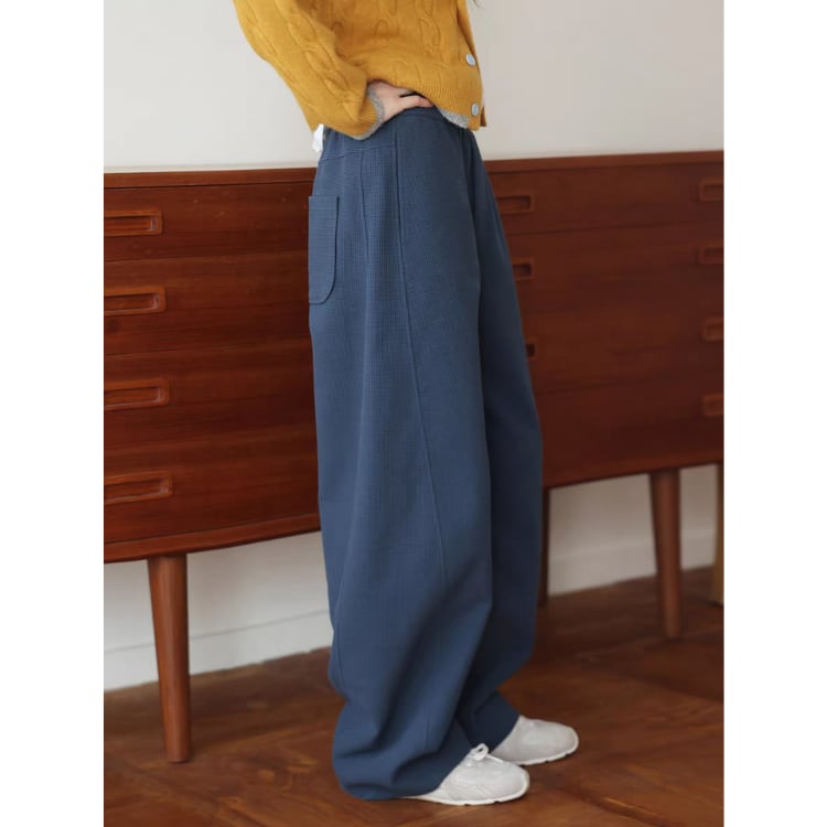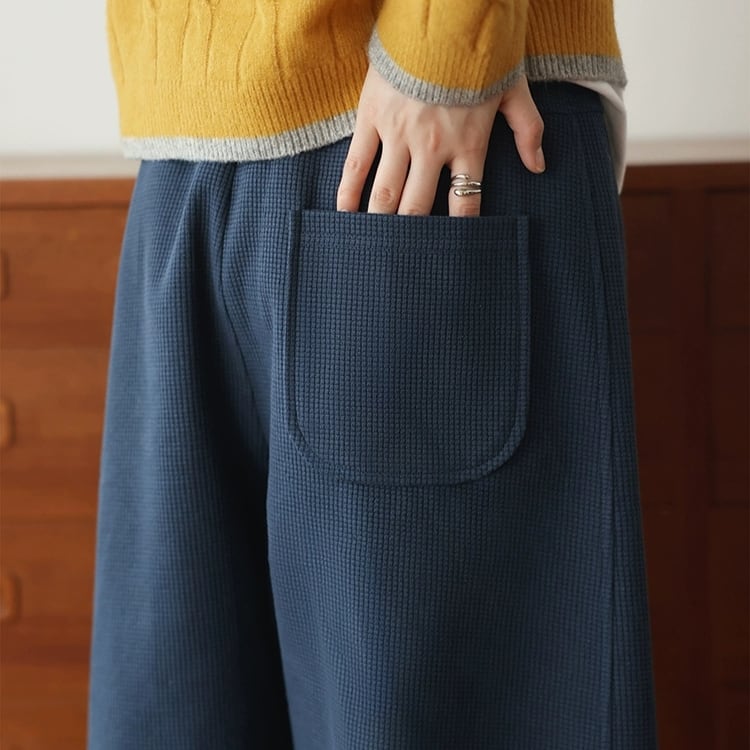 柔らかなワッフル生地を使用した、快適な穿き心地のワイドテーパードパンツです。