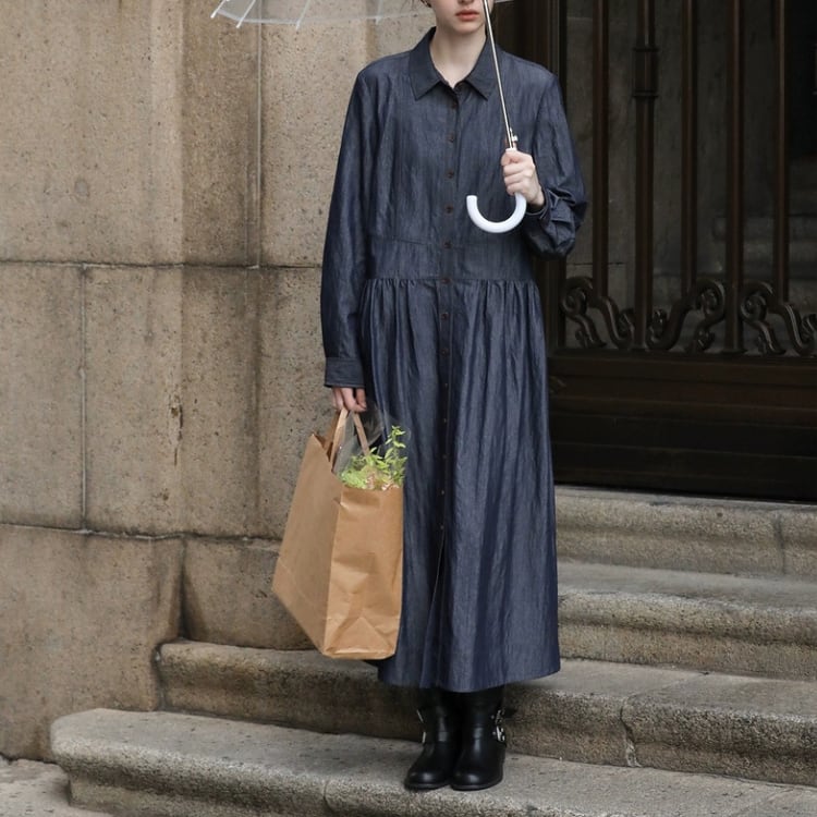 流行に流されず、長くご愛用いただけるシャツワンピースです。