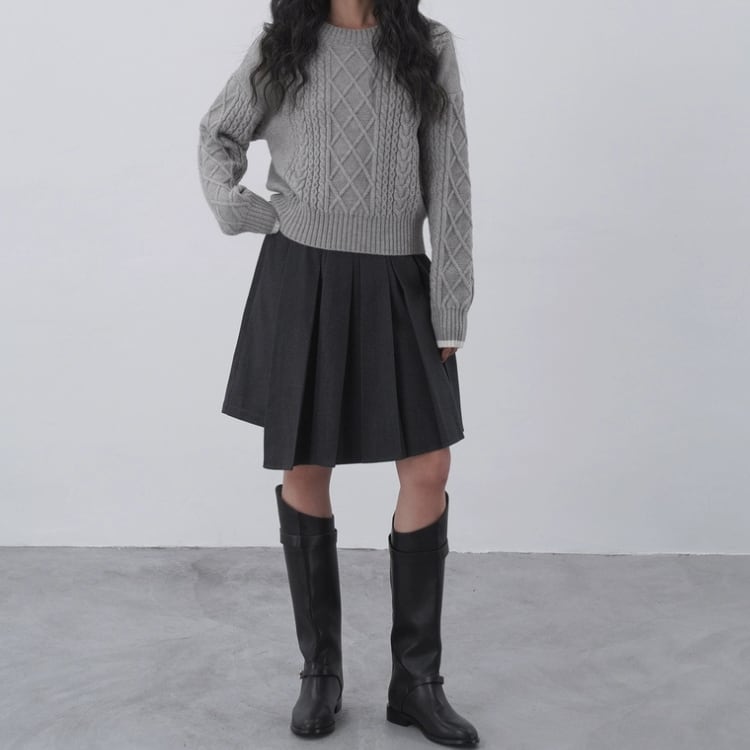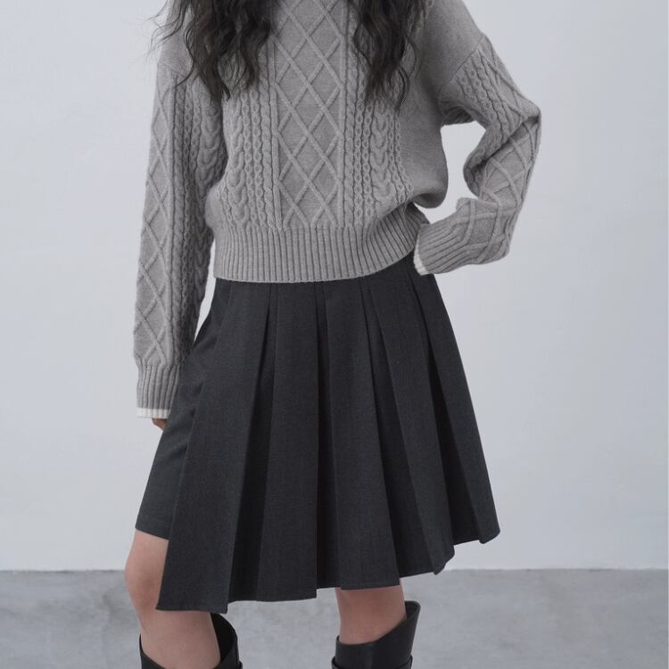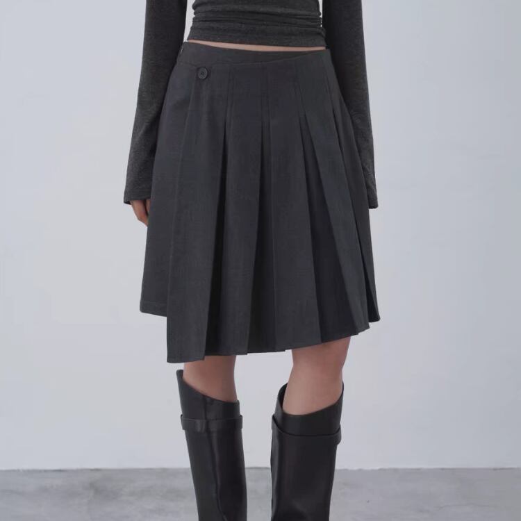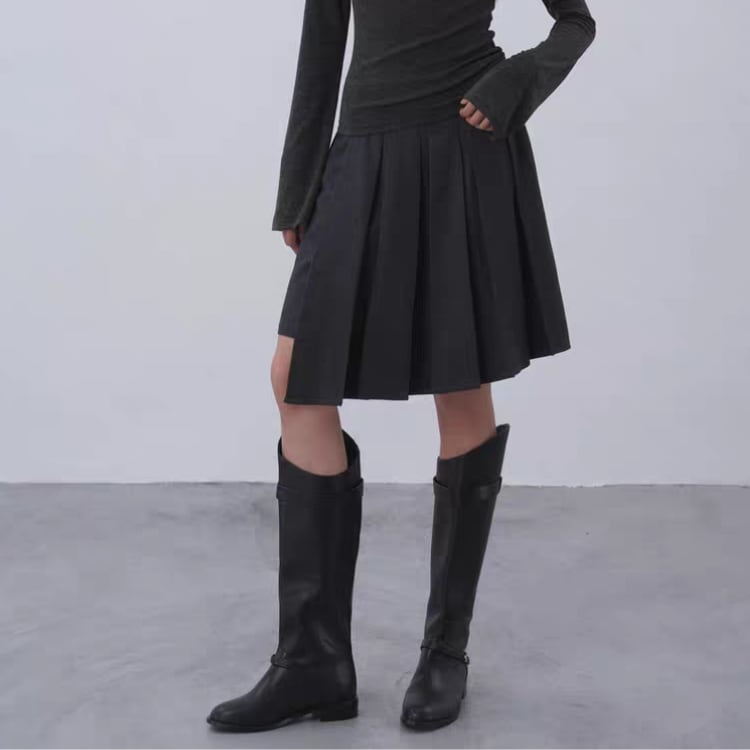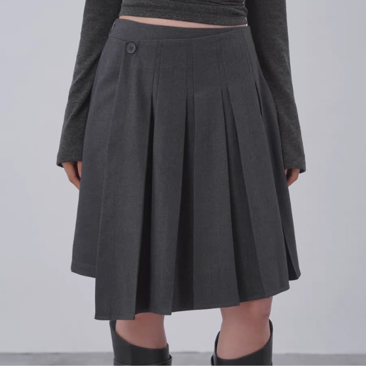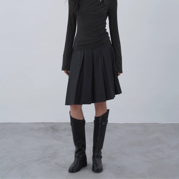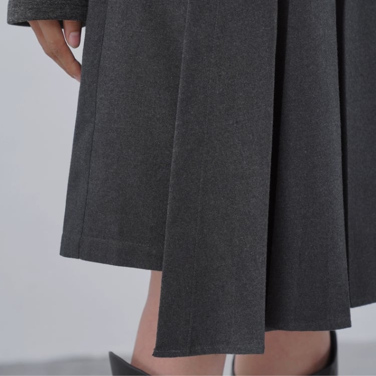 フロントに施されたボックスプリーツが魅力的なデザイン。