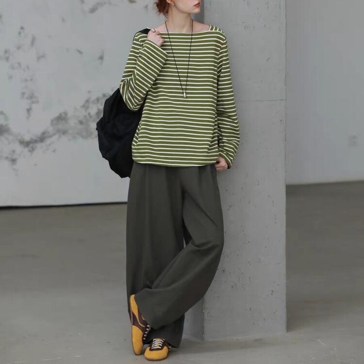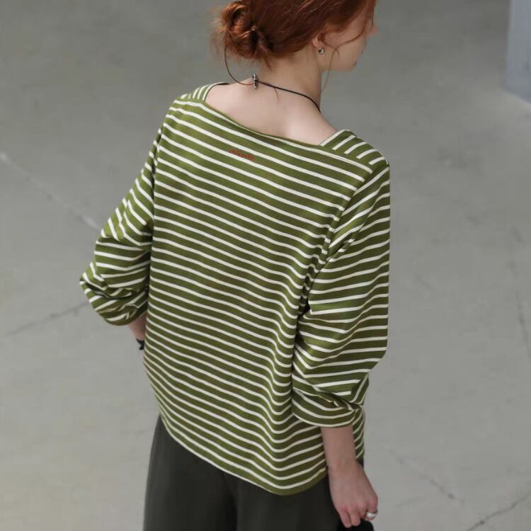 ボーダー柄オーバーサイズボートネックカットソー 1424