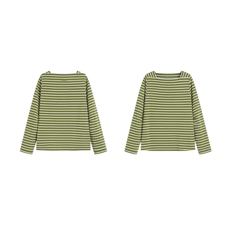 優しいグリーンのボーダー柄が魅力的。