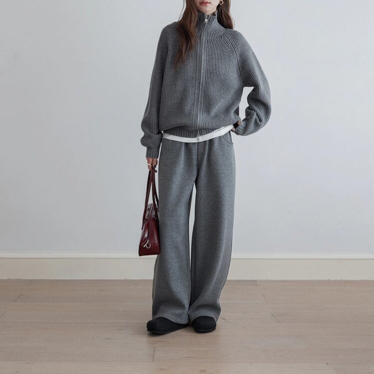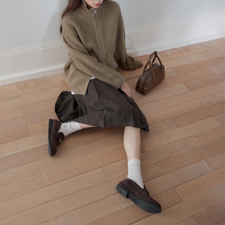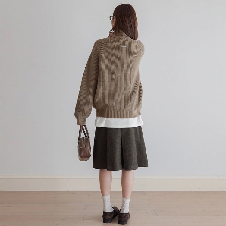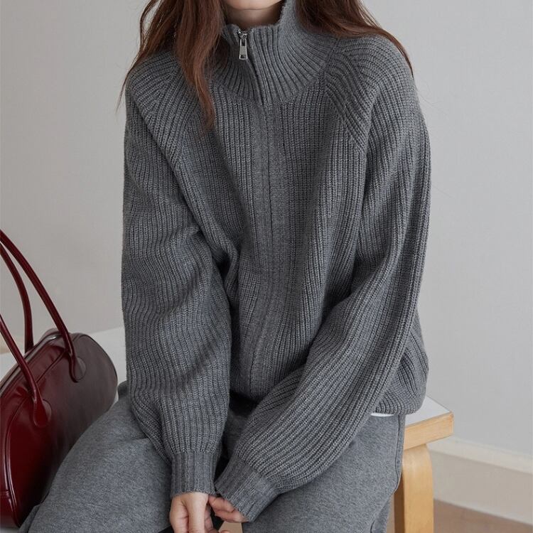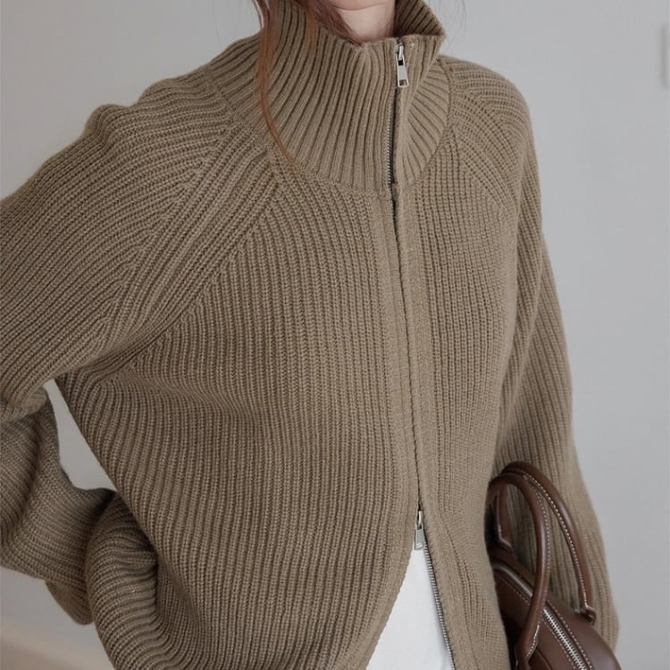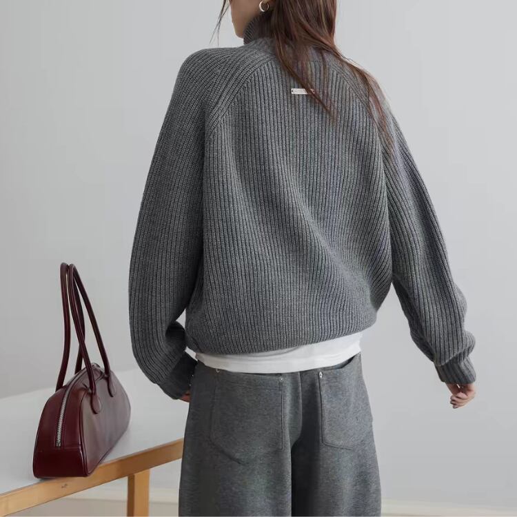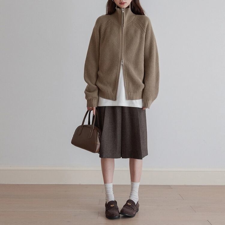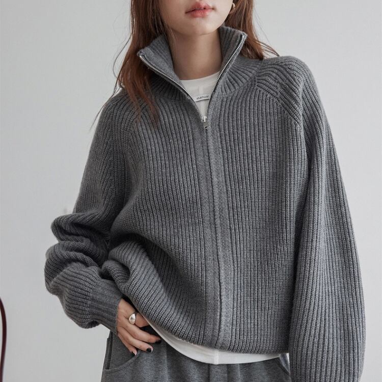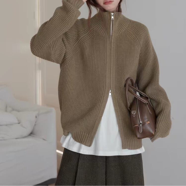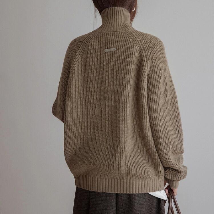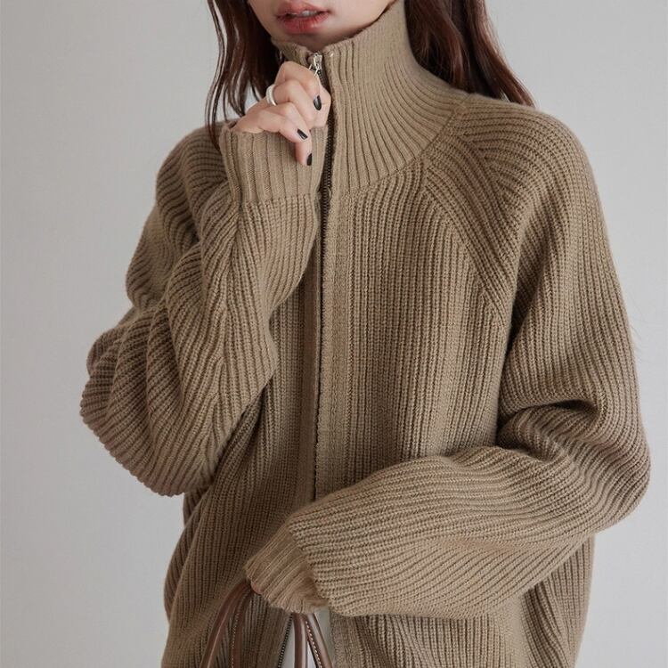 畦編みハイネックジップアップカーディガン 1450