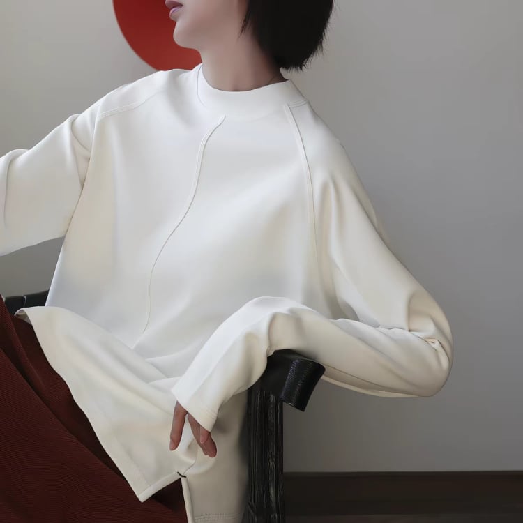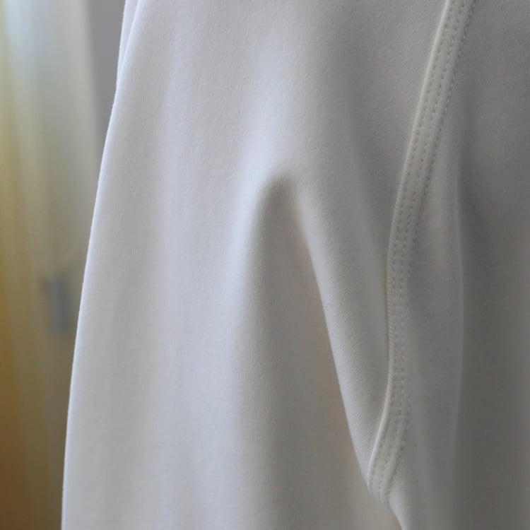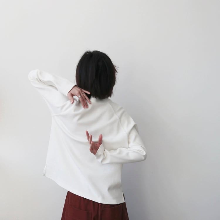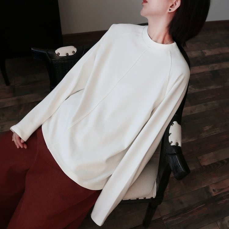 ゆったりとしたシルエットとラグランスリーブは、快適な着心地を実現。