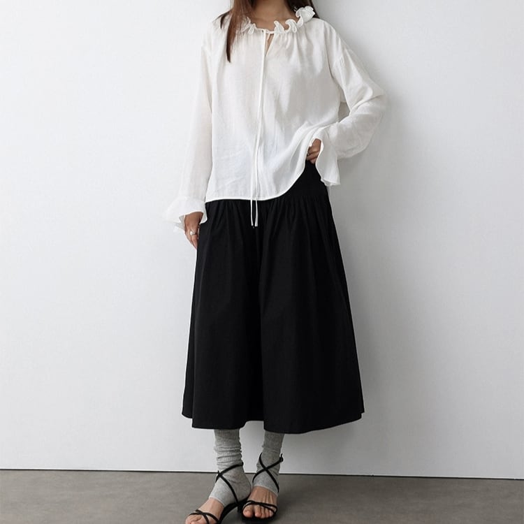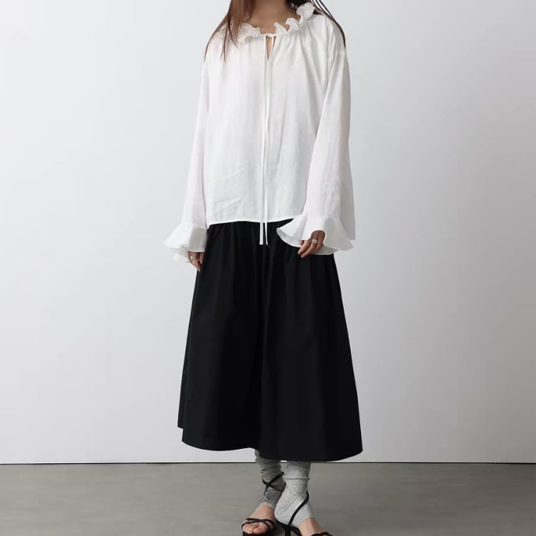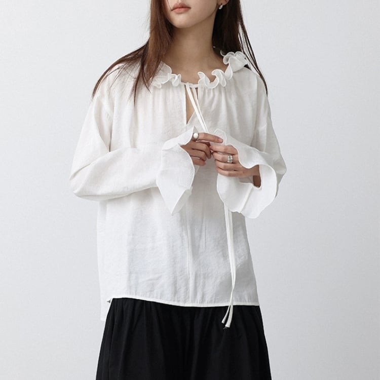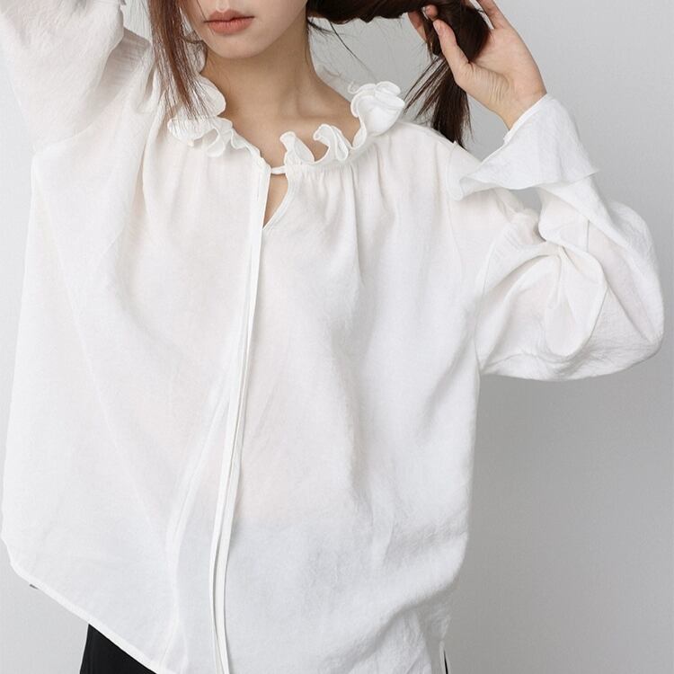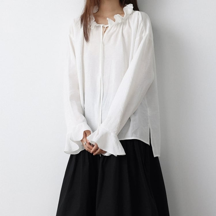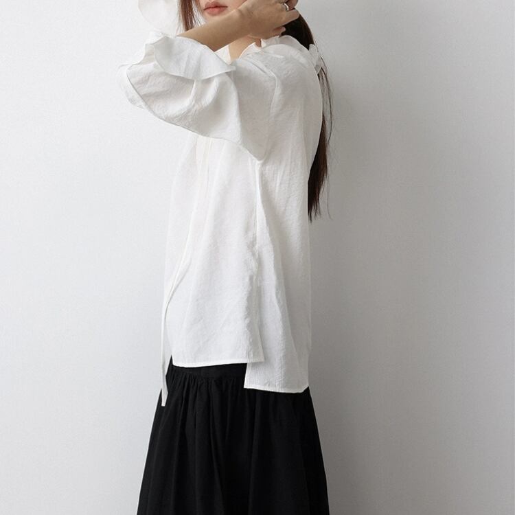 リボン付きフリルカラーフリル袖口オーバーサイズブラウス 1462
