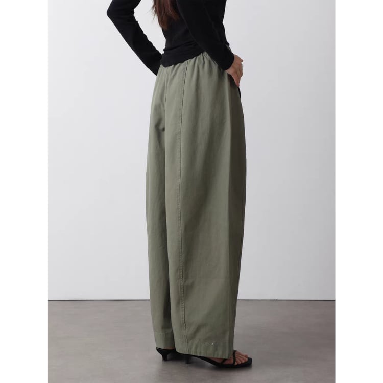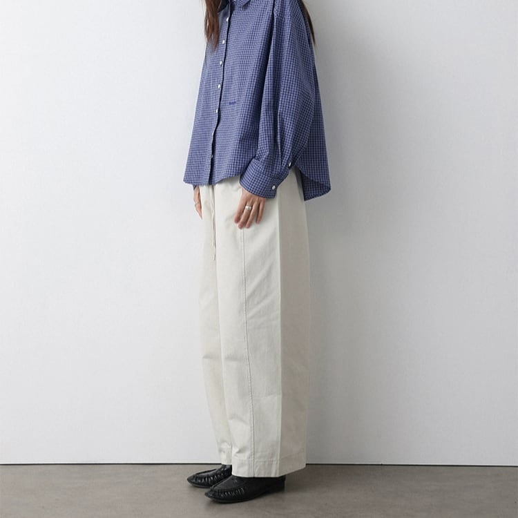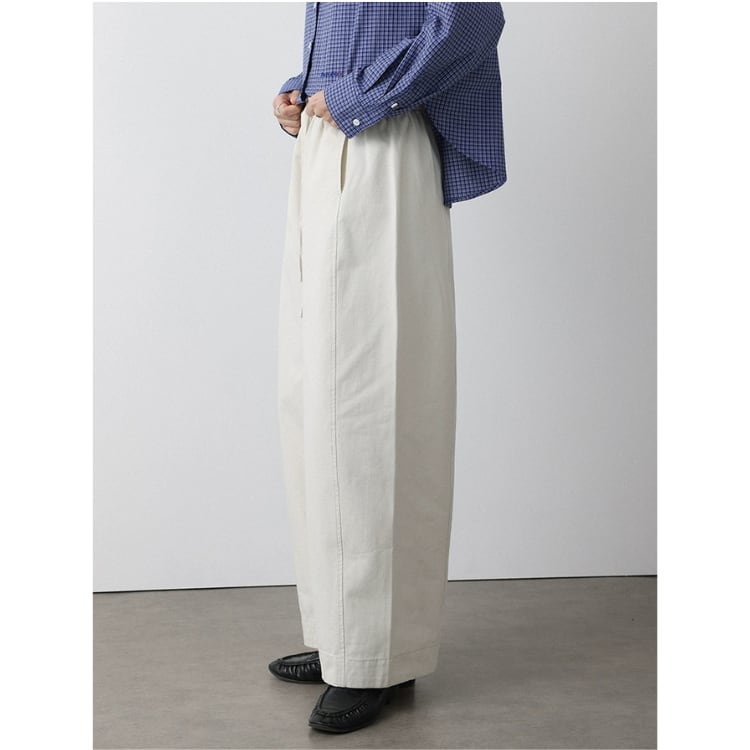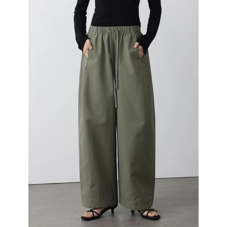 張りのある生地で独特のバレルシルエットを形成し、ストレスのないゆったりとしたシルエットで、体に優しい着心地を提供します。