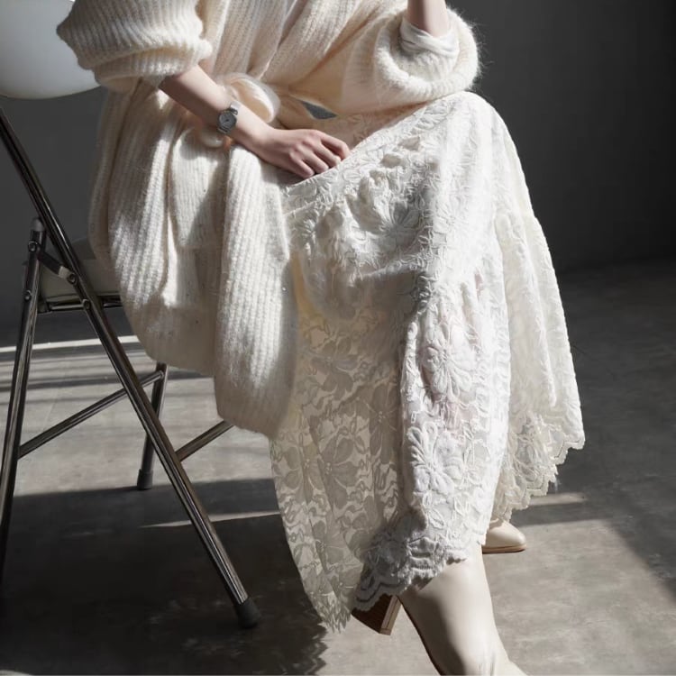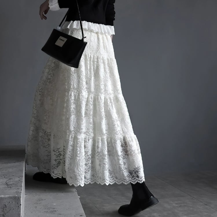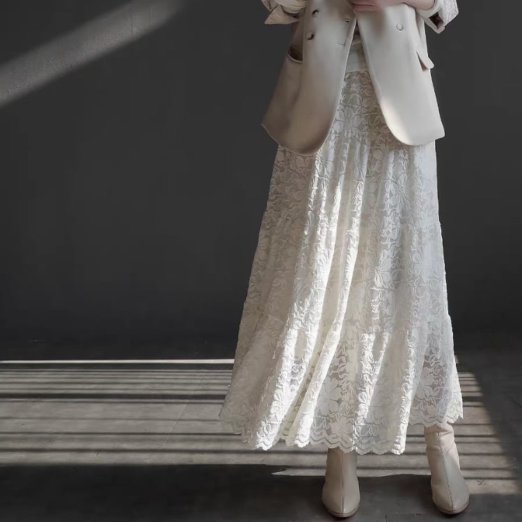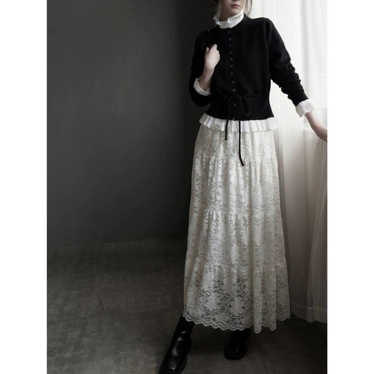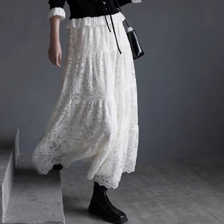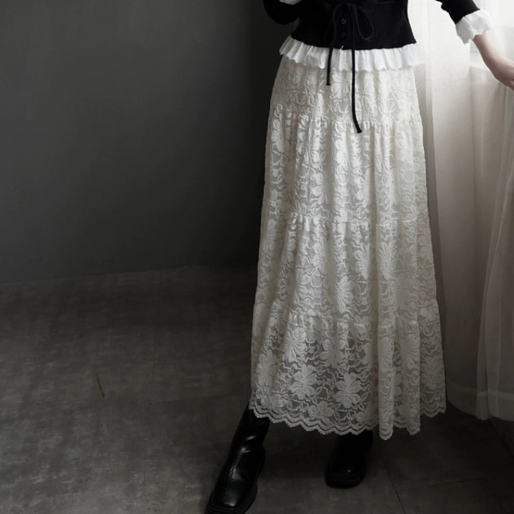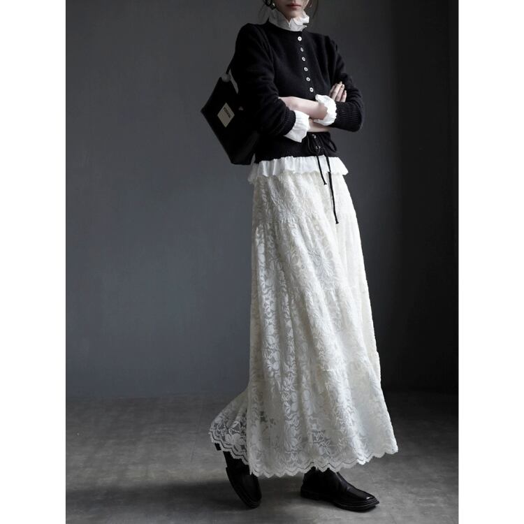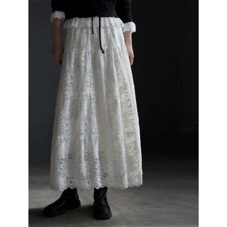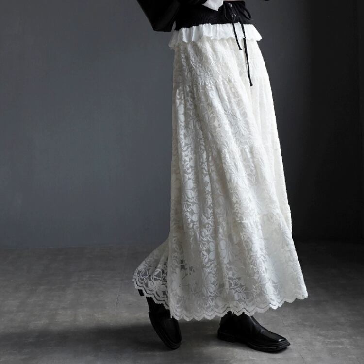 総レースマキシ丈ティアードスカート 1467