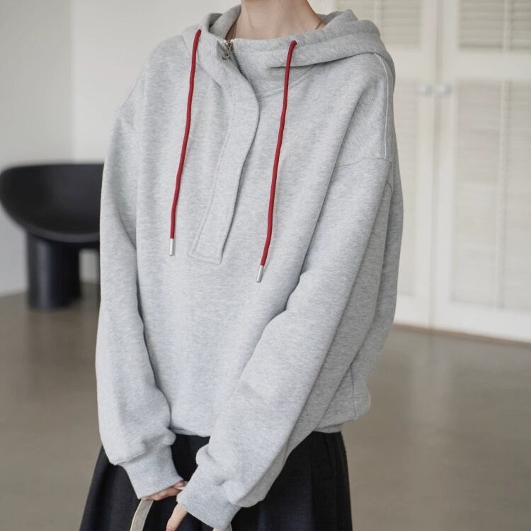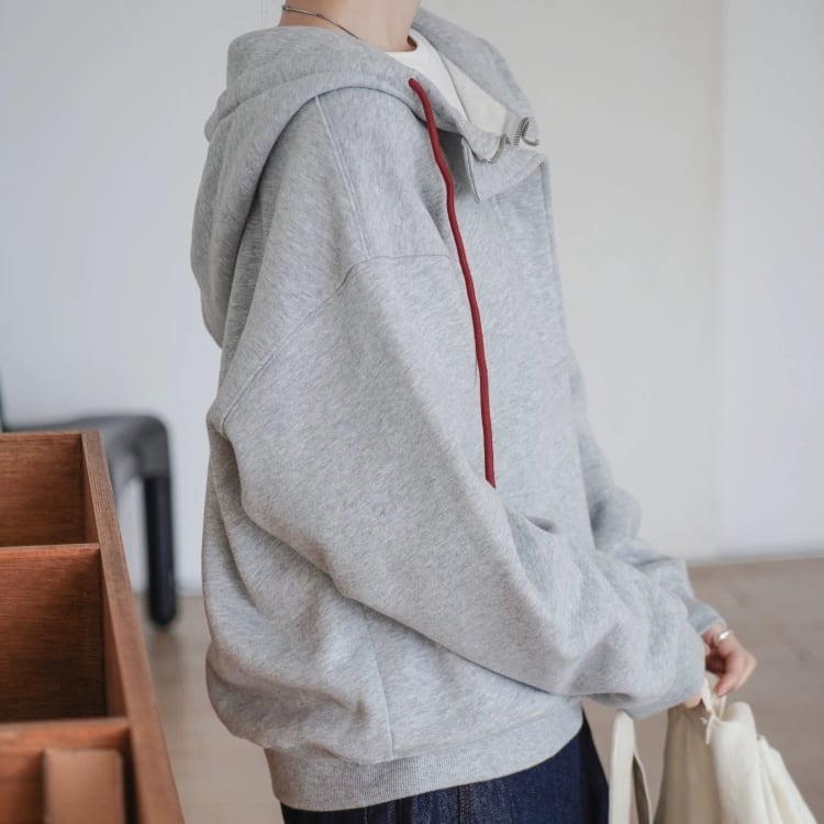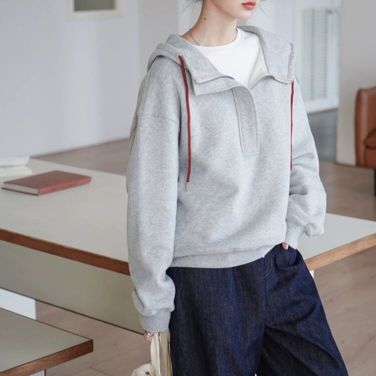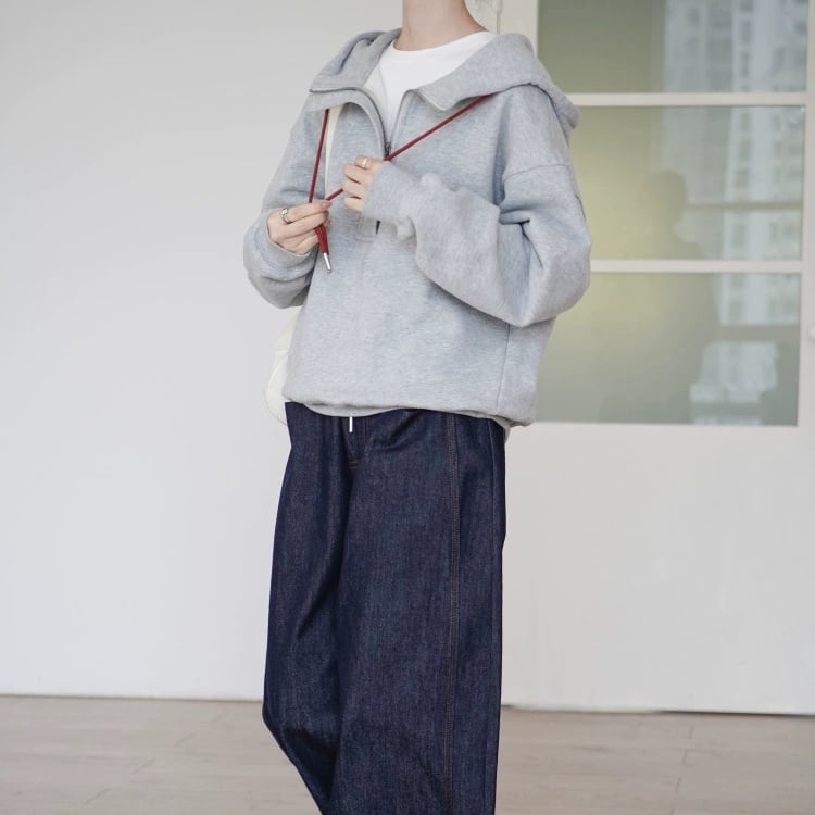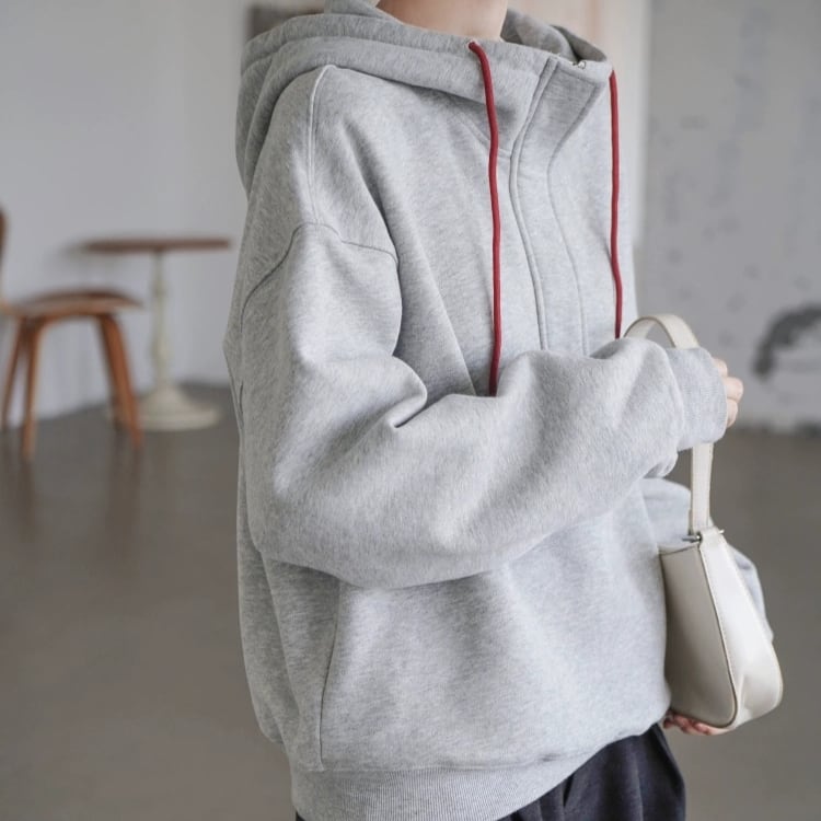 ハーフジップ仕様でおしゃれにキマるフーディー。