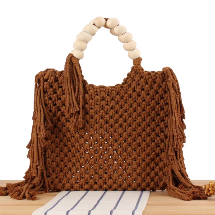 サイドフリンジ付きマクラメトートバッグ 1477