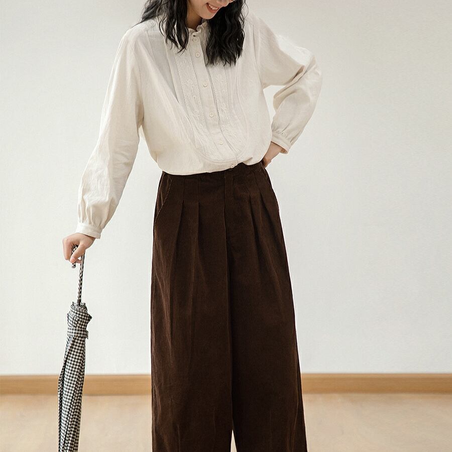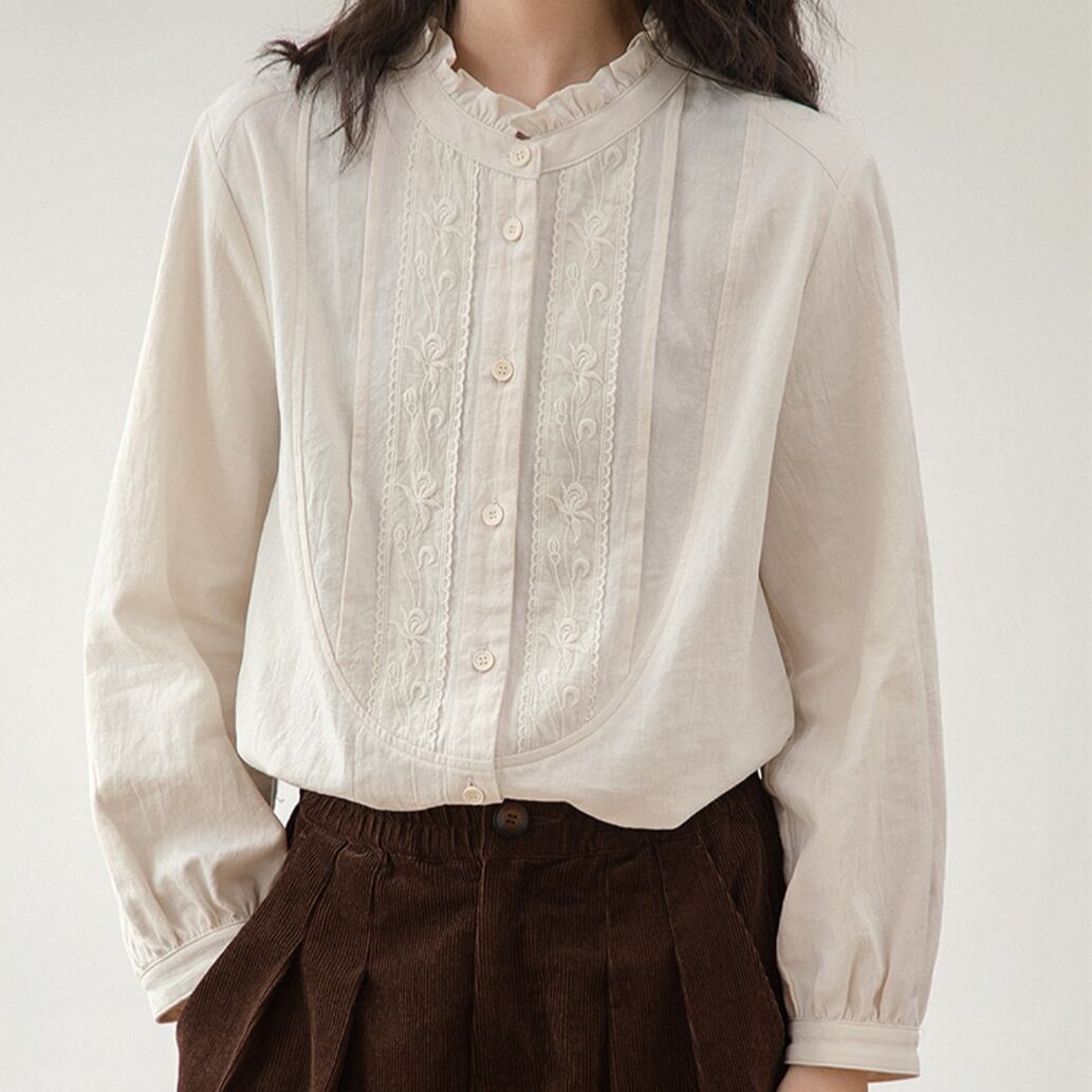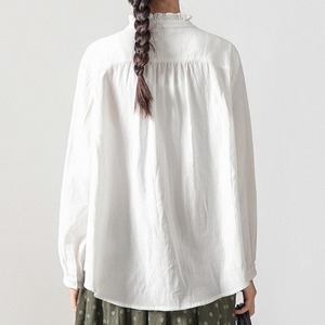 フリルスタンドカラー綿レース使いビブヨークブラウス 0066