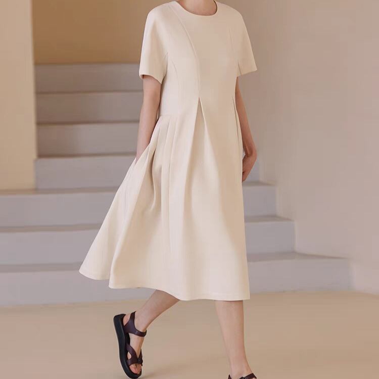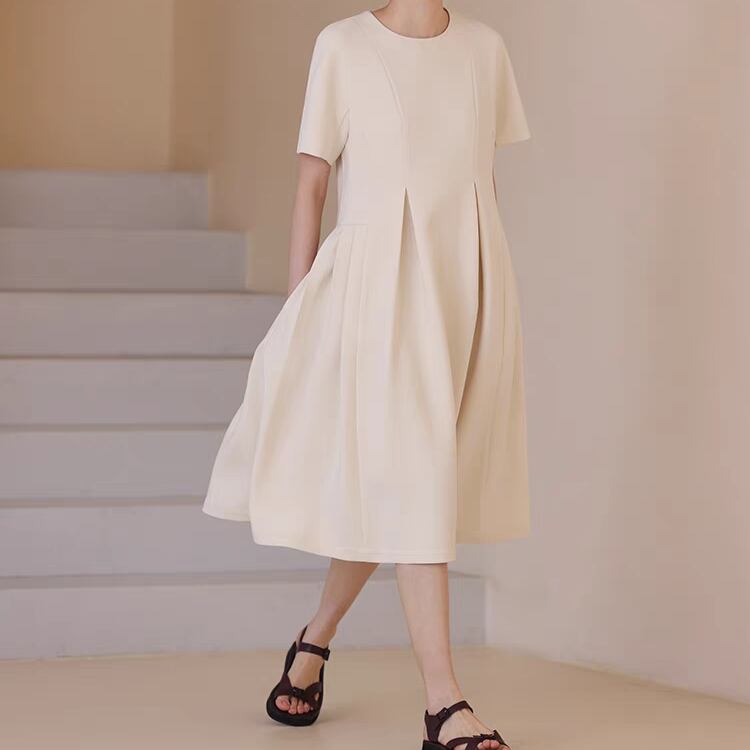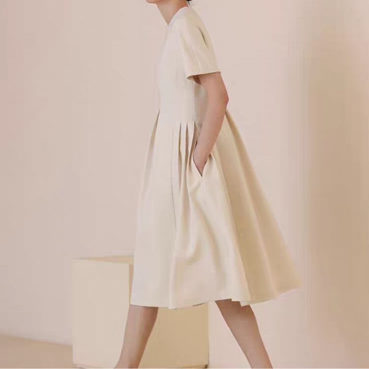 サイドプリーツ加工ミモレ丈ワンピース 0150