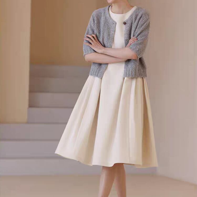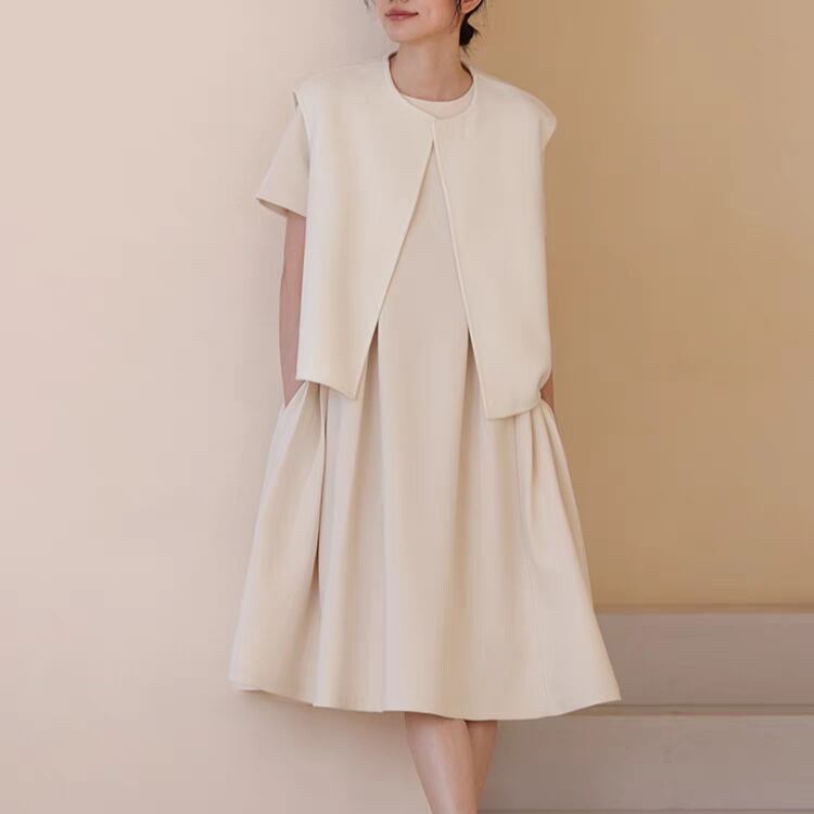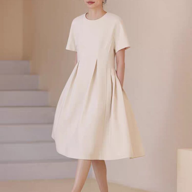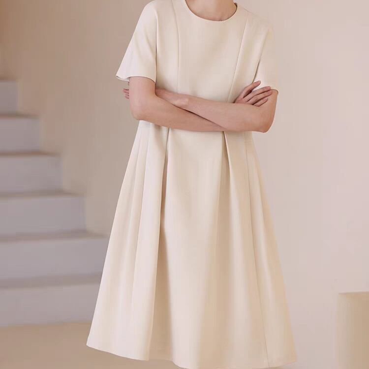 サイドのプリーツによりスカート部分がさらにふわっと広がり、女性らしく上品に着映えます。