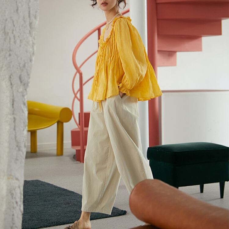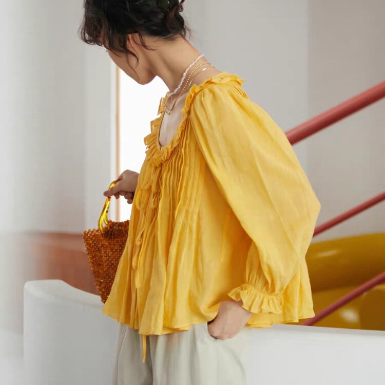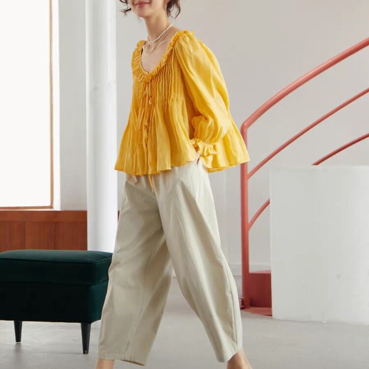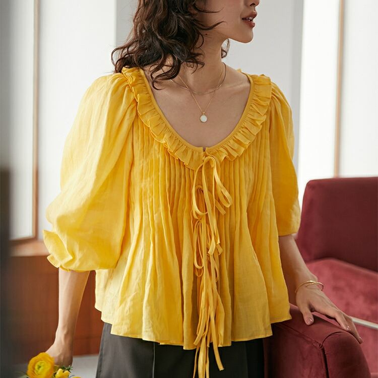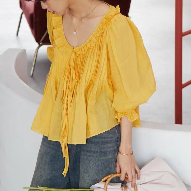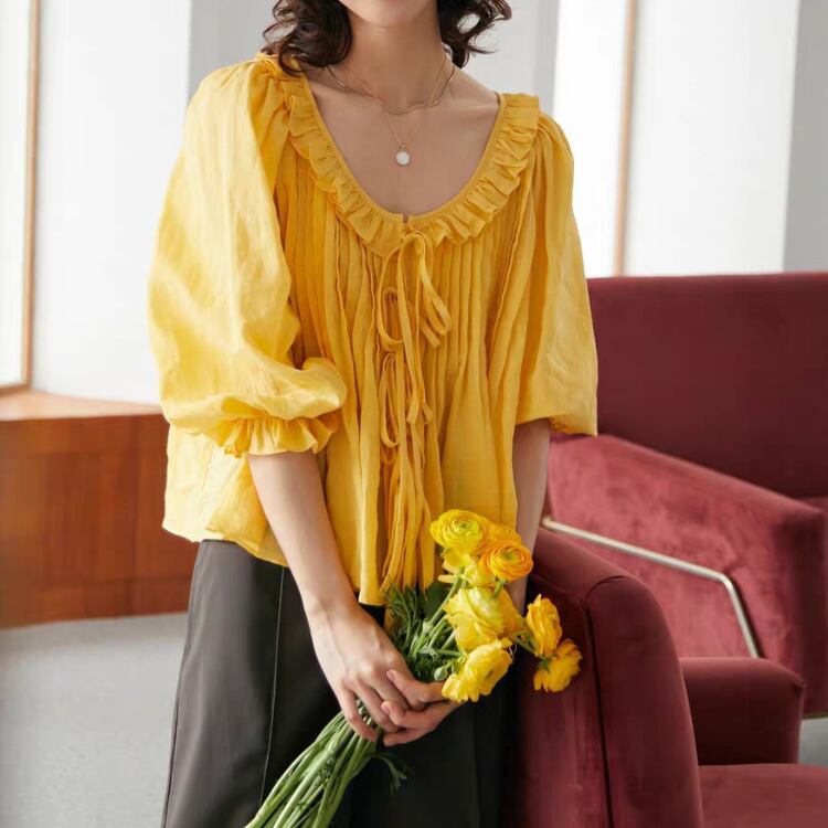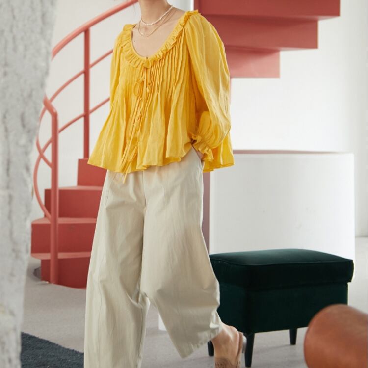フリルカラーラウンドネックAラインブラウス 0268