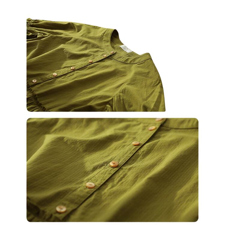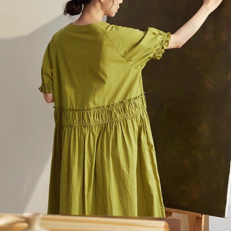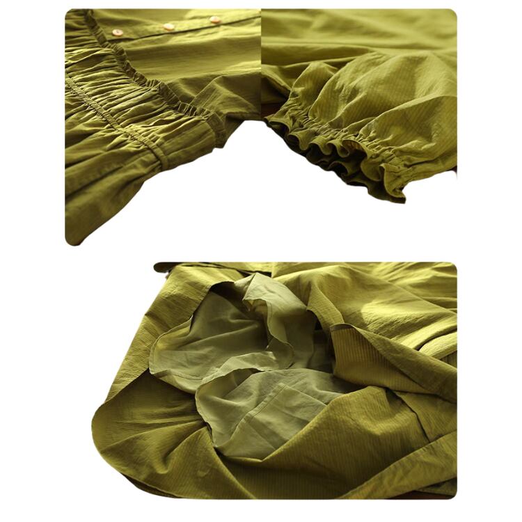 ゆったりとした身幅に加え、ウエストで寄せたたっぷりのギャザーで、Aライン風のシルエットに。