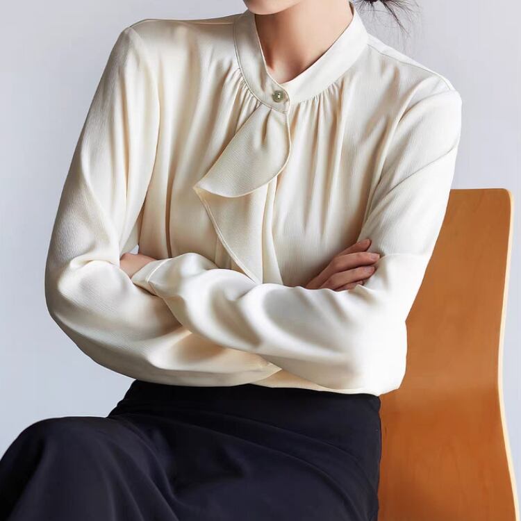 今季も人気のボウタイブラウスは、オフィスやお出かけのコーデに華やかさを演出。