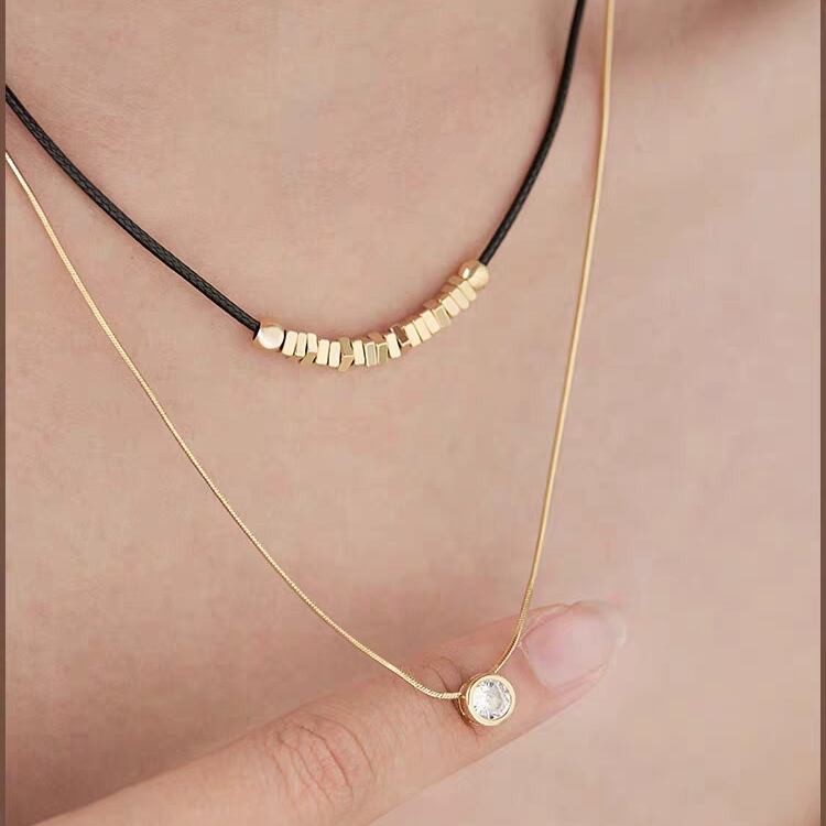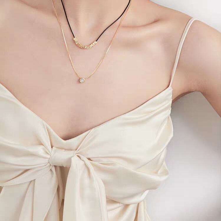 今季はネックレスの重ね着けがトレンドのひとつ。